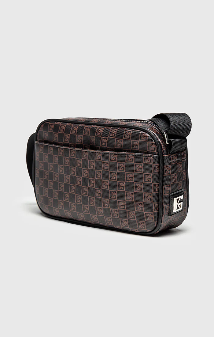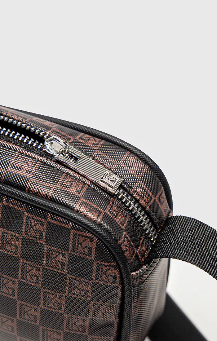 A bolsa tiracolo castanha Gianni Kavanagh destaca-se pelo seu design contemporâneo com padrão quadriculado e acabamento texturado. Fabricada em 60% poliéster e 40% poliuretano, combina resistência e elegância, com forro interior em 100% poliéster.