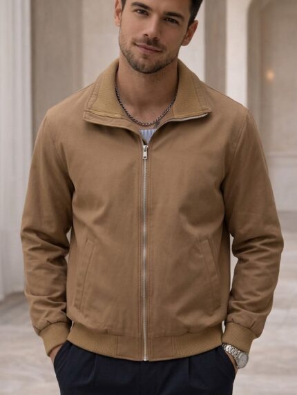 Casaco bomber confecionado em poliéster e poliamida, com corte slim fit e fecho.Opção prática e elegante, com o design clássico e intemporal do casaco de malha, fabricado em Portugal. As peças ZOLF são enviadas já prontas a serem usadas, não sendo necessária a primeira lavagem.