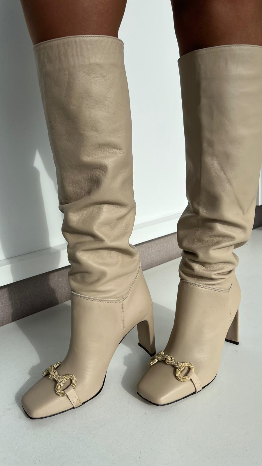 BOTA ALTA BEGE COM DETALHE DOURADO RINASCIMENTO