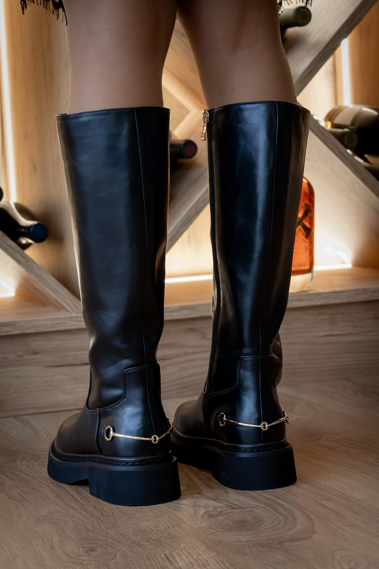 BOTA ALTA PRETA COM DETALHE METÁLICO RINASCIMENTO