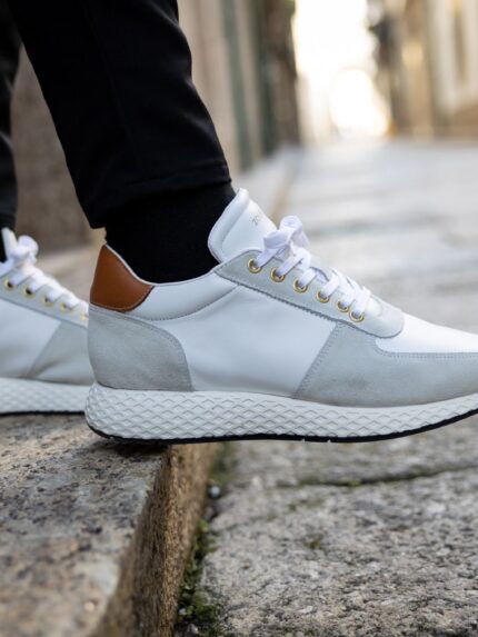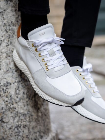A sola espessa em borracha branca acrescenta contraste e atitude ao modelo, reforçando o estilo urbano característico da marca Zolf. O acabamento em camurça macia garante uma textura elegante e agradável ao toque, ideal para usar em qualquer ocasião.