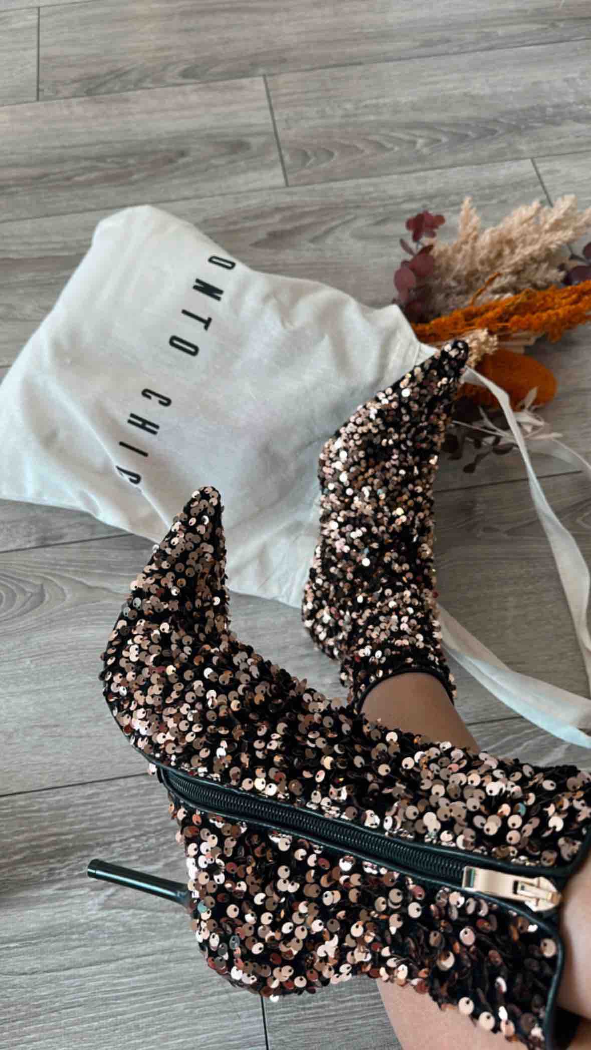 BOTINS DE LANTEJOULAS BRONZE RINASCIMENTO
