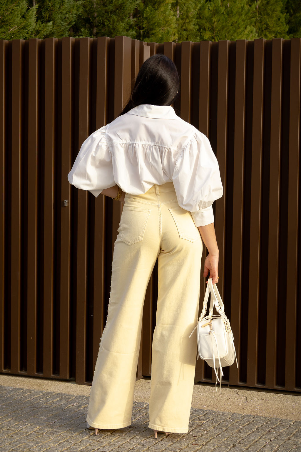 CALÇA AMARELO CLARO COM APLICA