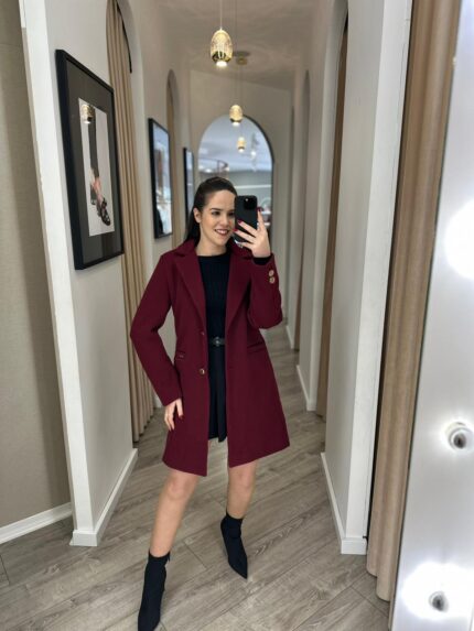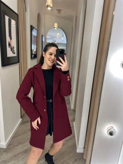 CASACO COM LAPELA CLÁSSICA E BOTÕES DOURADOS BORDÔ PONTO CHIC