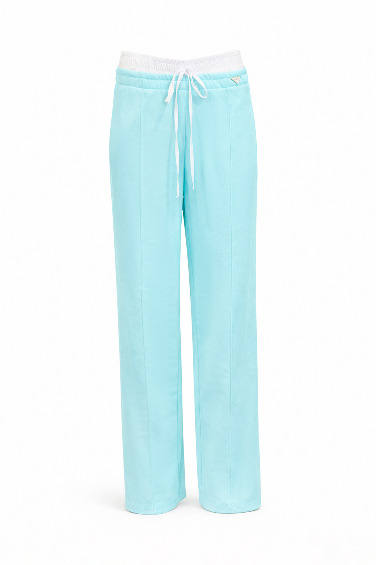 Uma calça de estética contemporânea que alia conforto e sofisticação numa proposta moderna e versátil. Em tom azul, destaca-se pelo detalhe de encaixe em contraste na lateral, que acrescenta profundidade ao design e cria um efeito visual alongador.
