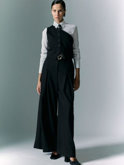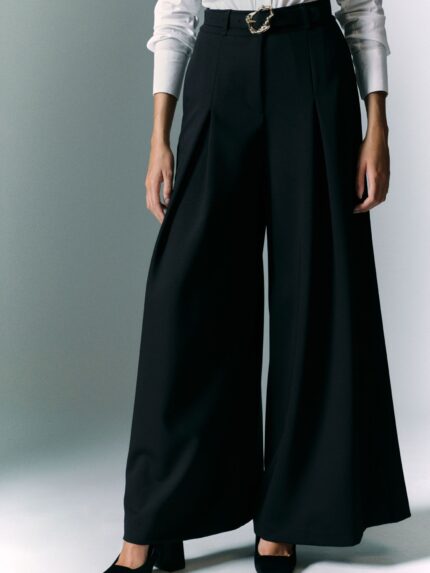 CALÇAS CINZENTAS DE CORTE LARGO COM CINTO IMPERIAL