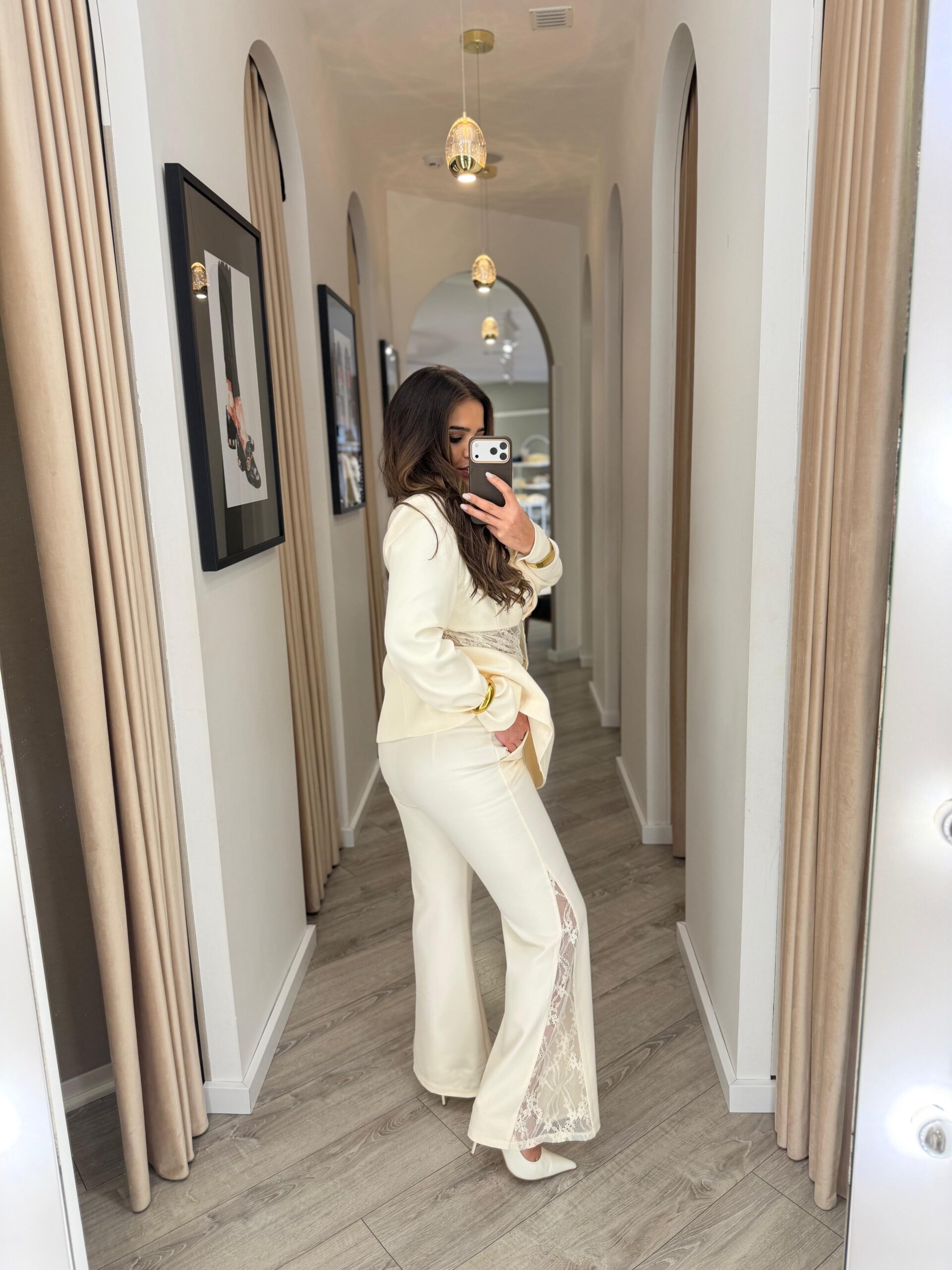 Uma calça de posicionamento premium, onde a alfaiataria se cruza com a delicadeza da renda, pensada para mulheres que valorizam detalhe, qualidade e elegância intemporal.