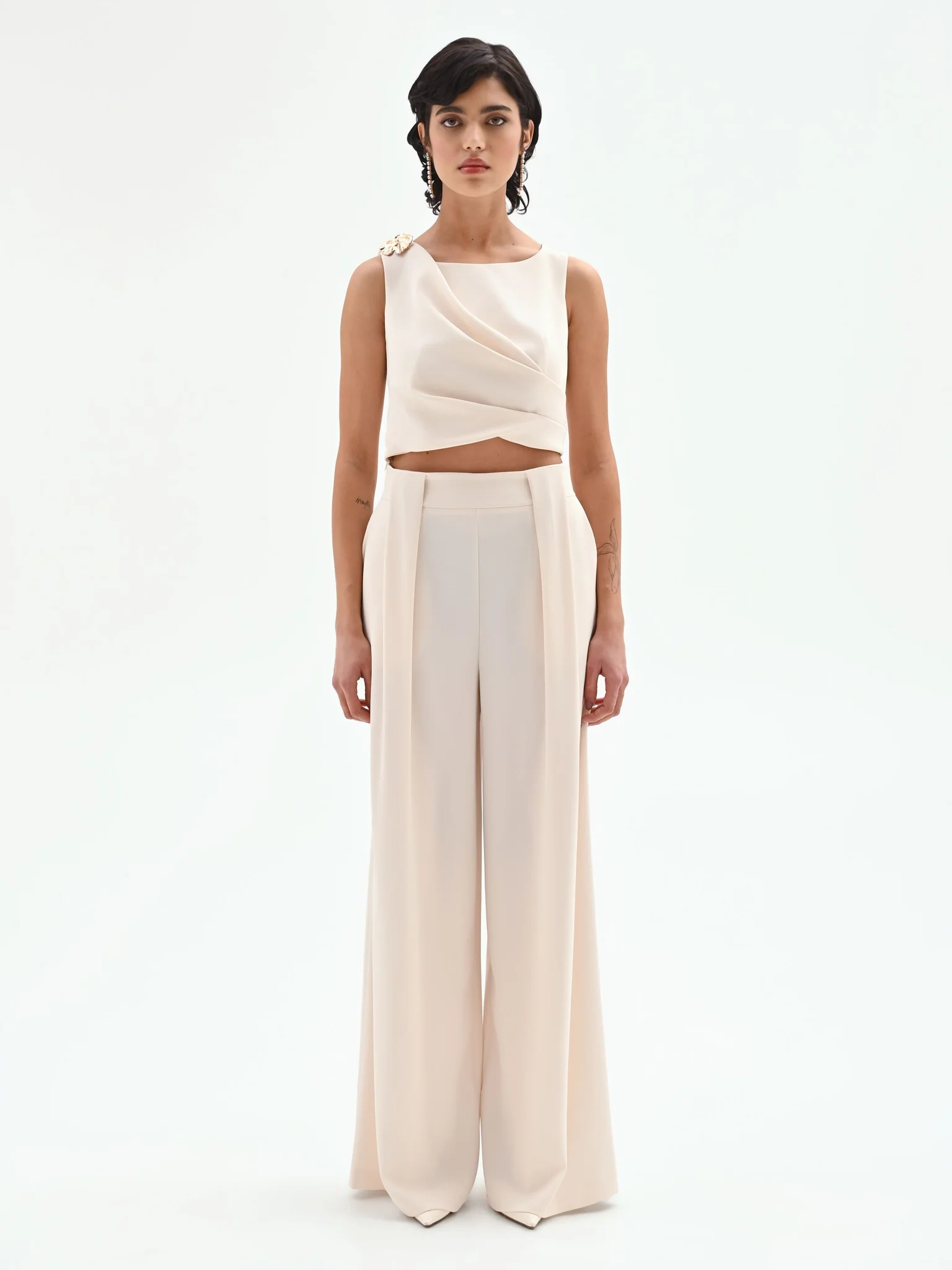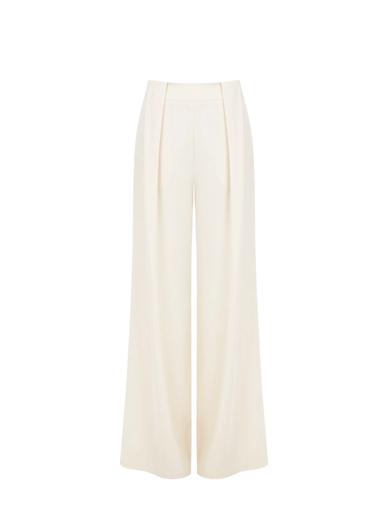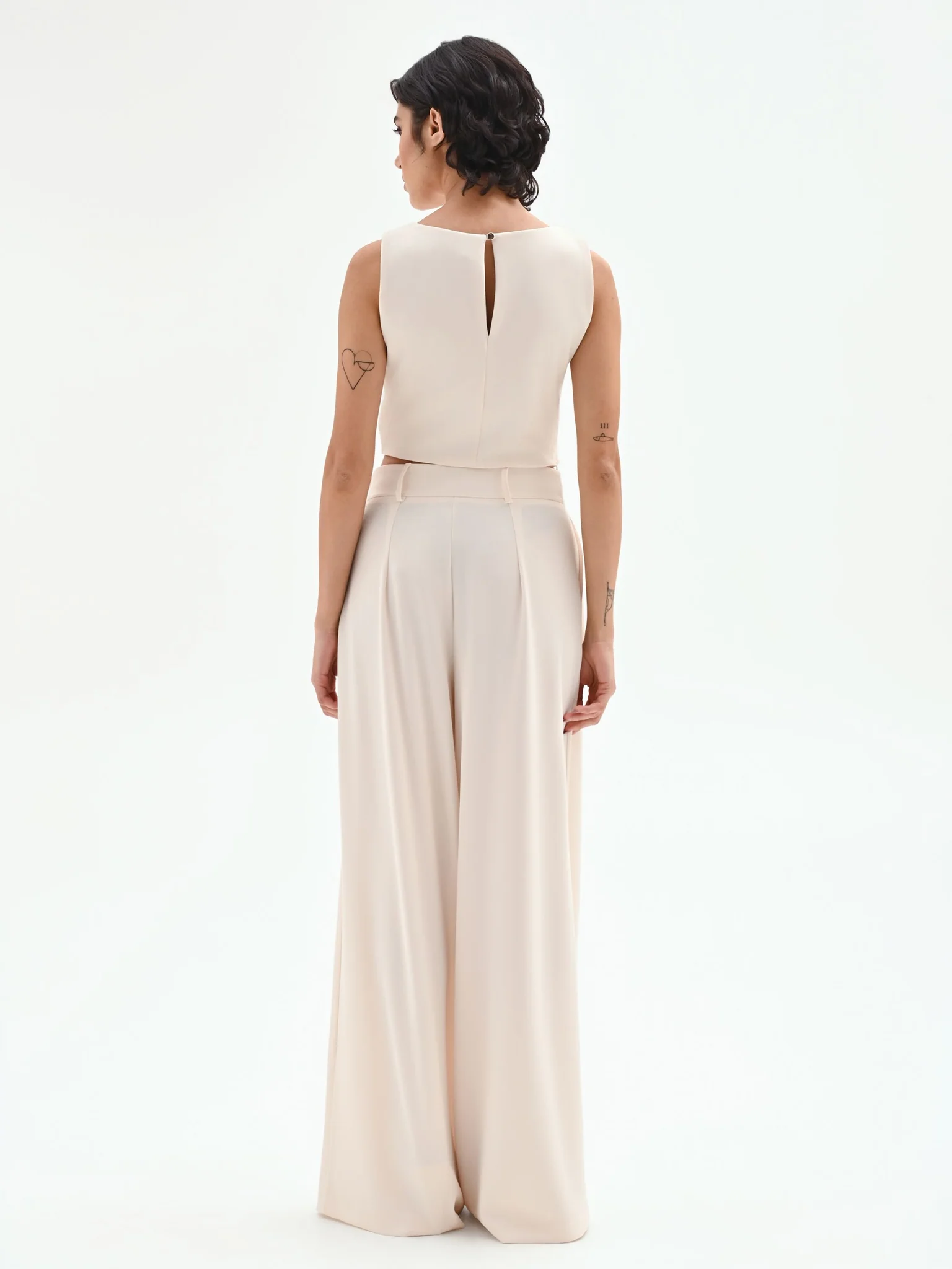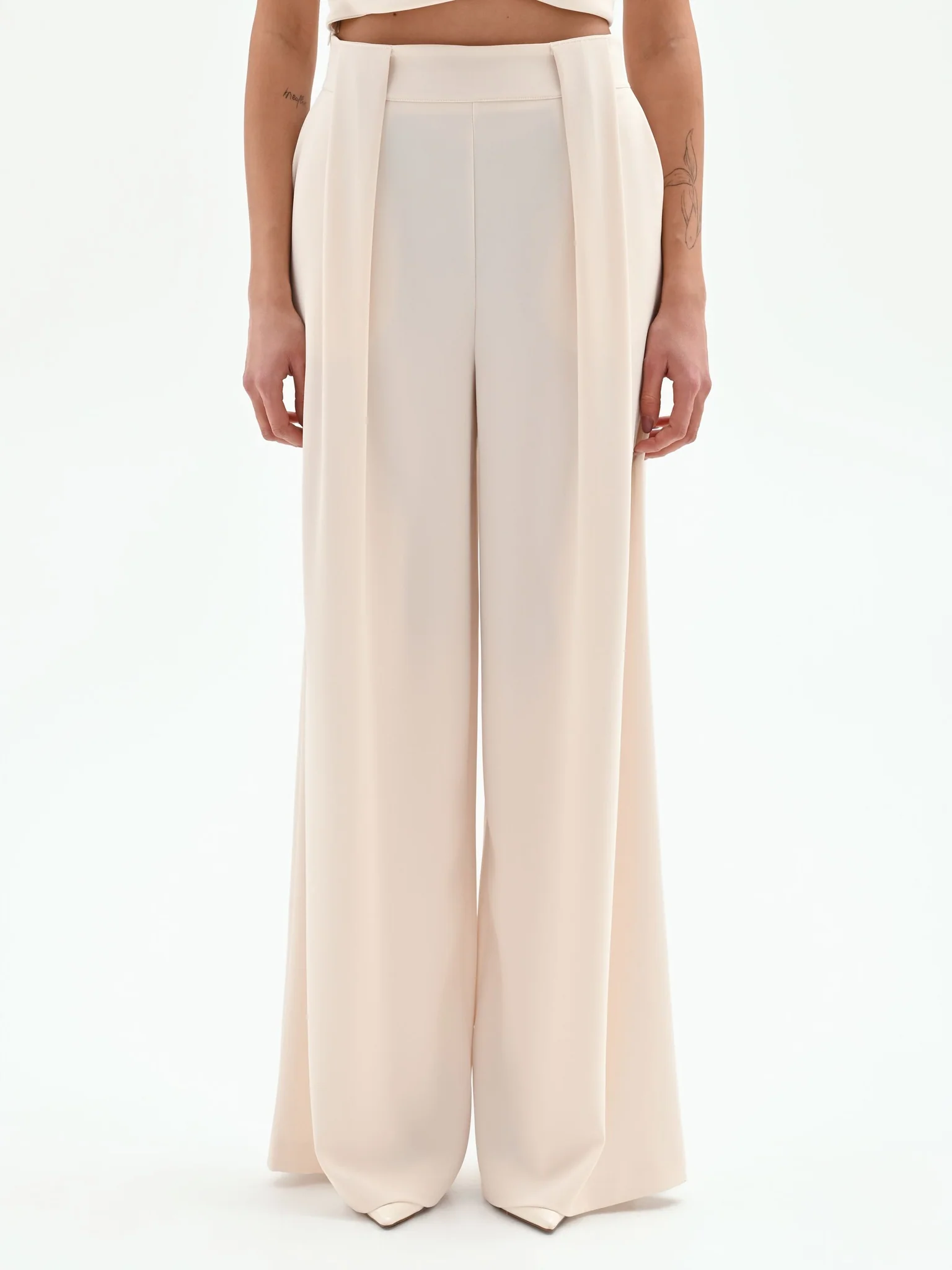CALÇA BEGE FLUIDA COM PREGAS NA CINTURA RINASCIMENTO