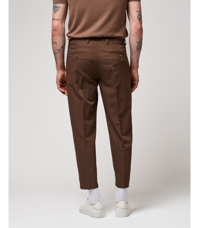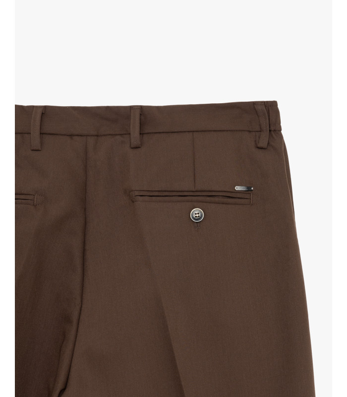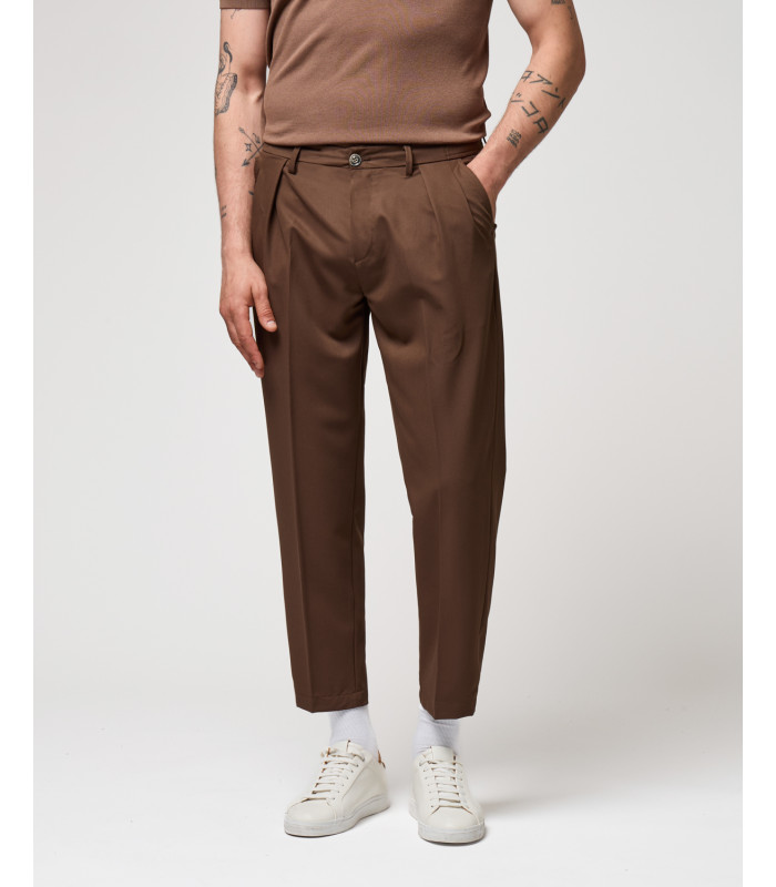 CALÇA CASTANHO ESCURO COM PREGAS E CORDÃO AJUSTÁVEL GIANNI LUPO