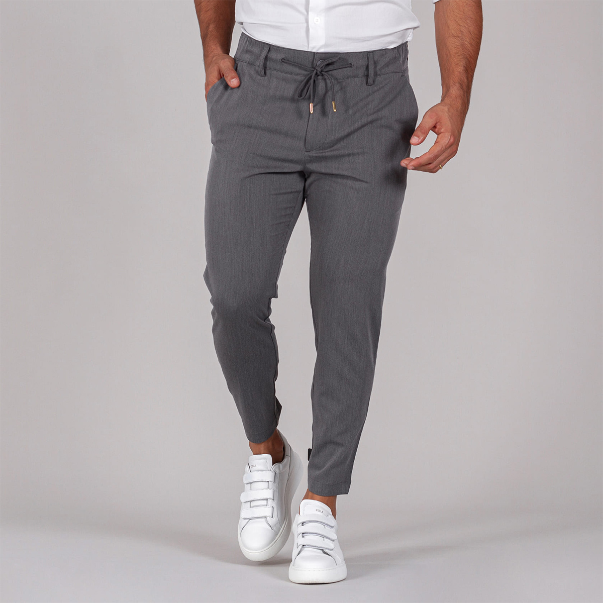 CALÇA COM CORDÃO SLIM FIT CINZENTA ZOLF