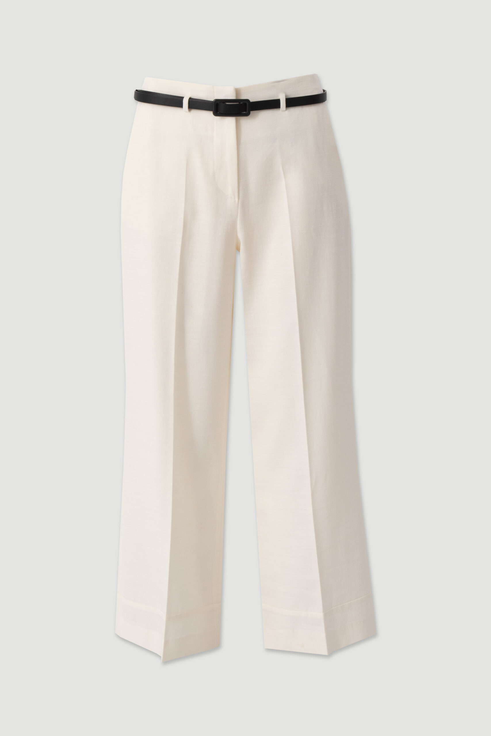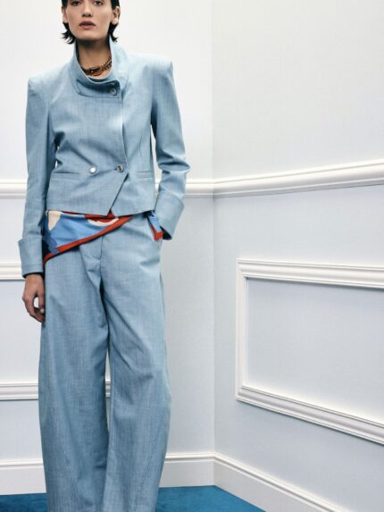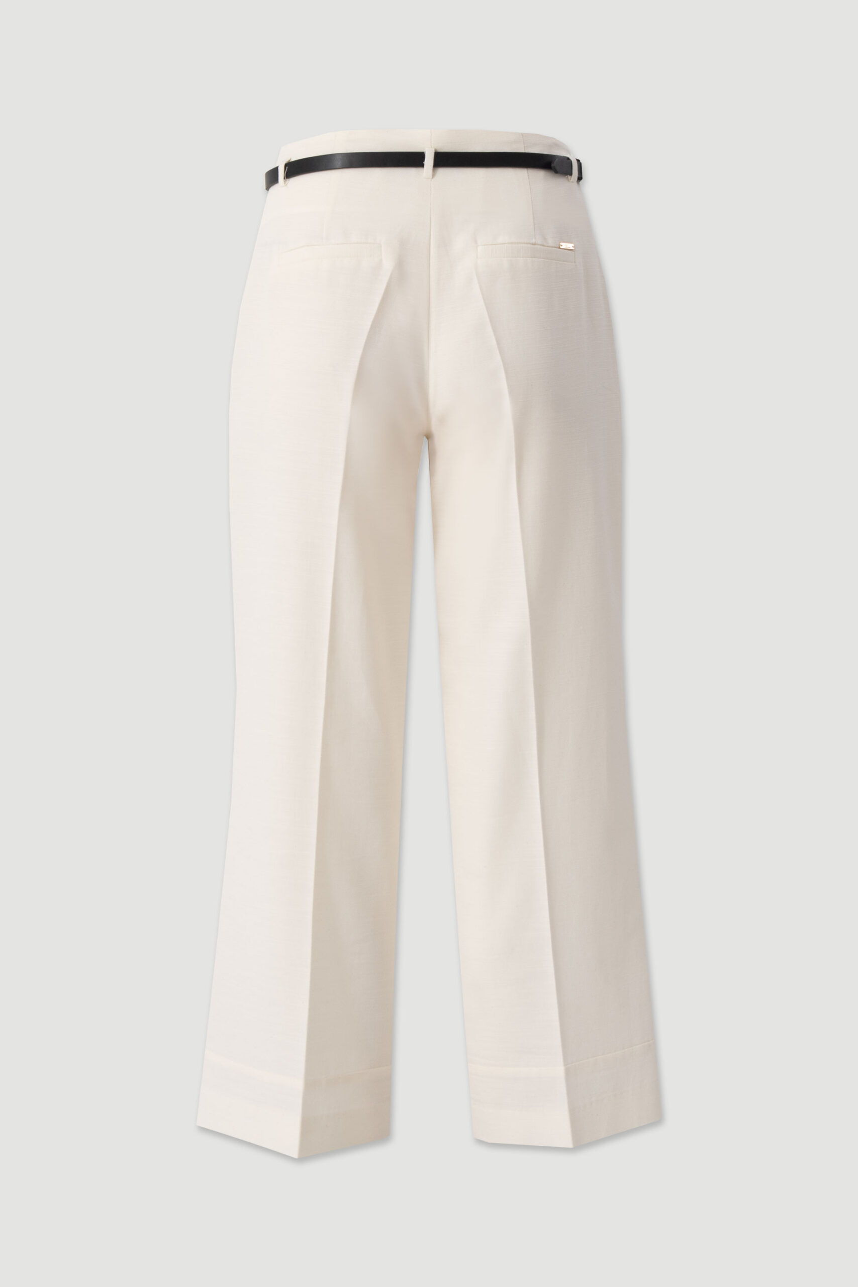 Calça culotte que se destaca pelo corte amplo e fluido, criando uma silhueta moderna e sofisticada. A cintura subida alonga a figura, enquanto as pregas frontais acrescentam estrutura e movimento. O cinto fino em contraste define a cintura com subtileza, tornando-a perfeita para conjugar com blusas leves ou peças estruturadas. Versátil e intemporal, adapta-se facilmente do escritório a momentos mais especiais.