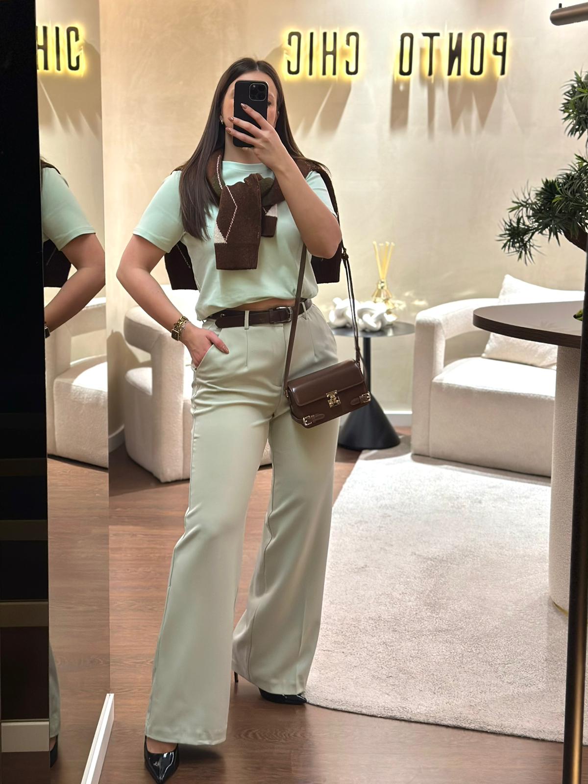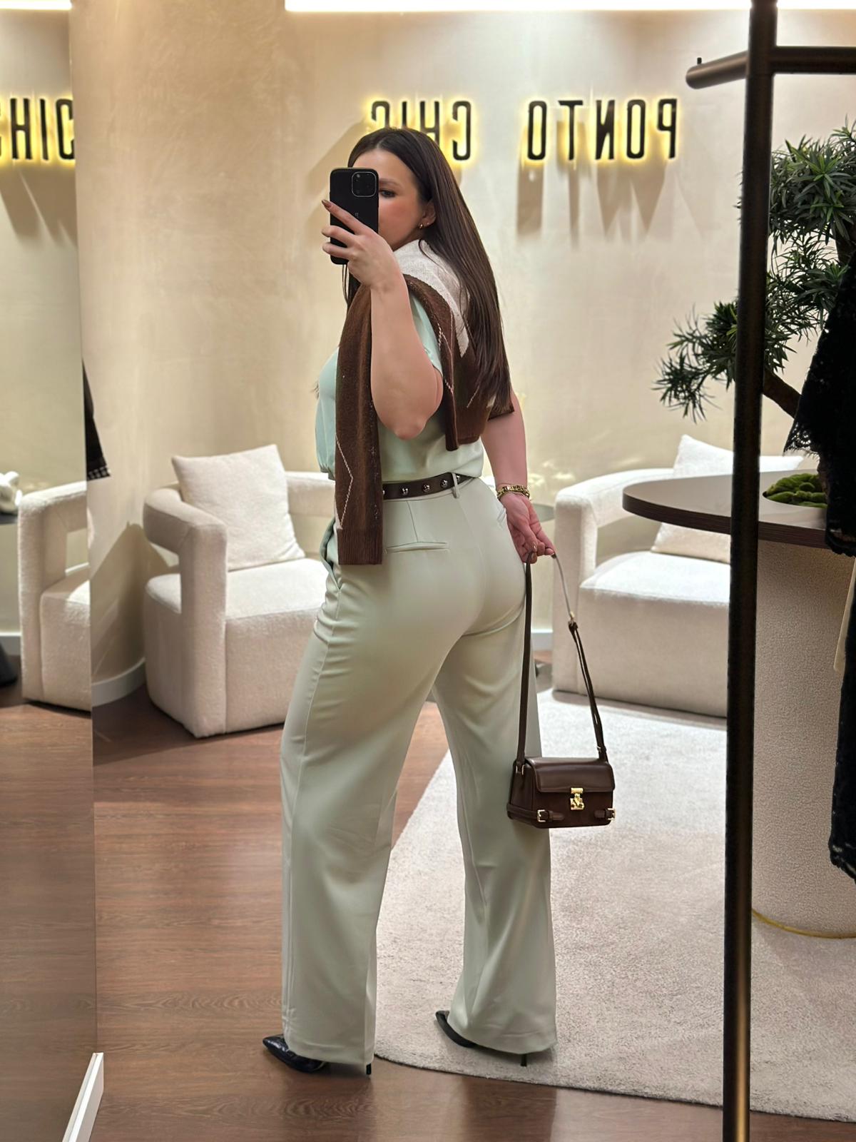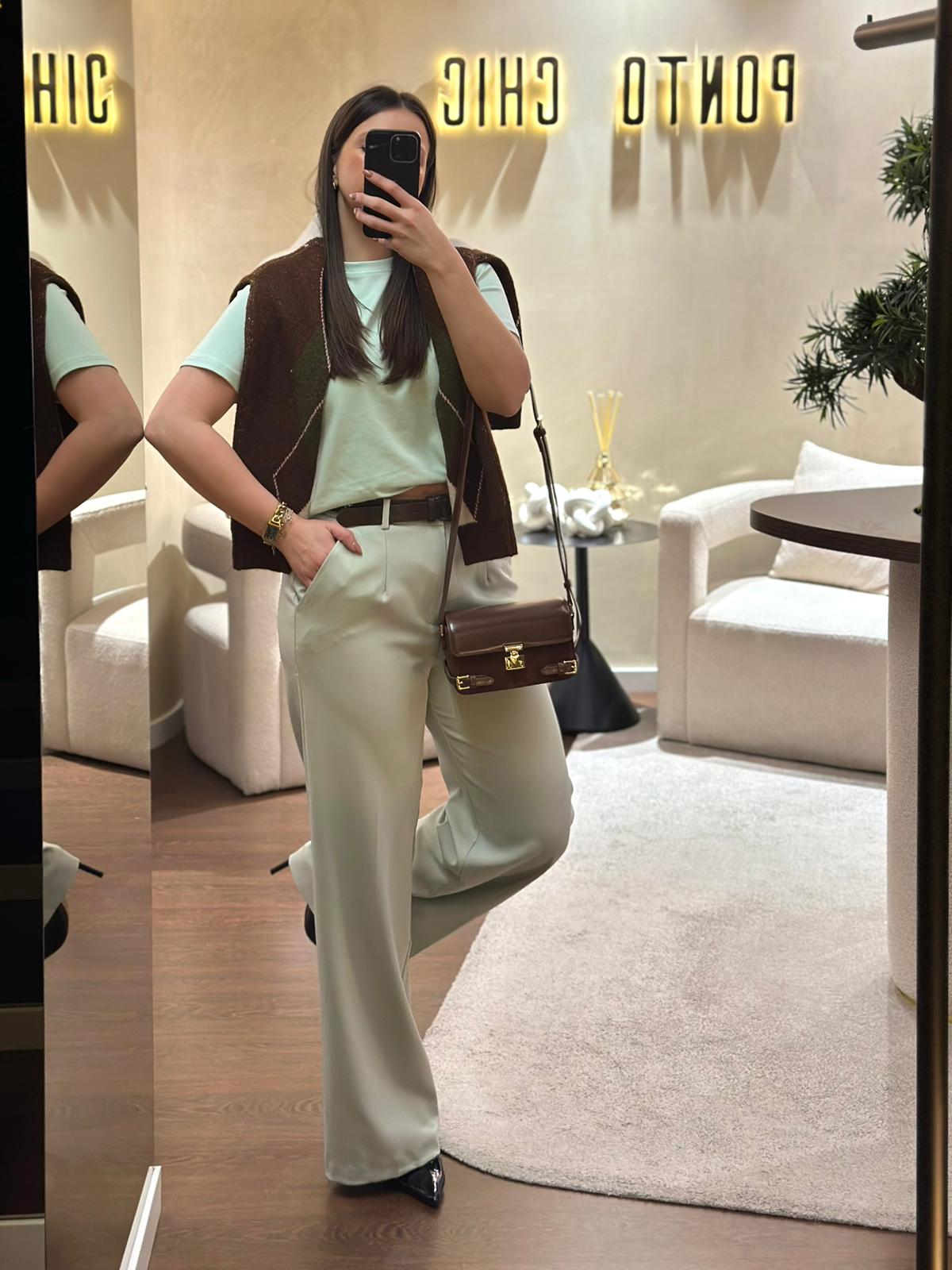 CALÇA DE ALFAIATARIA VERDE MENTA PONTO CHIC