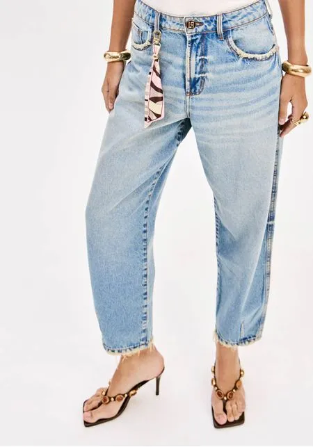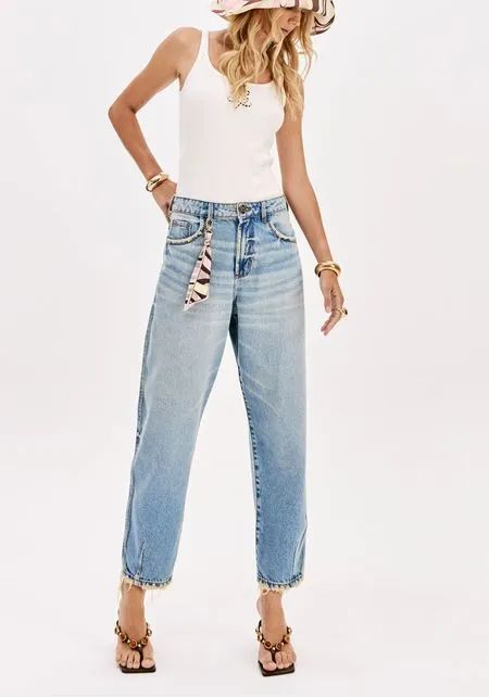 CALÇA DE GANGA AZUL CLARO COM LENÇO LANÇA PERFUME