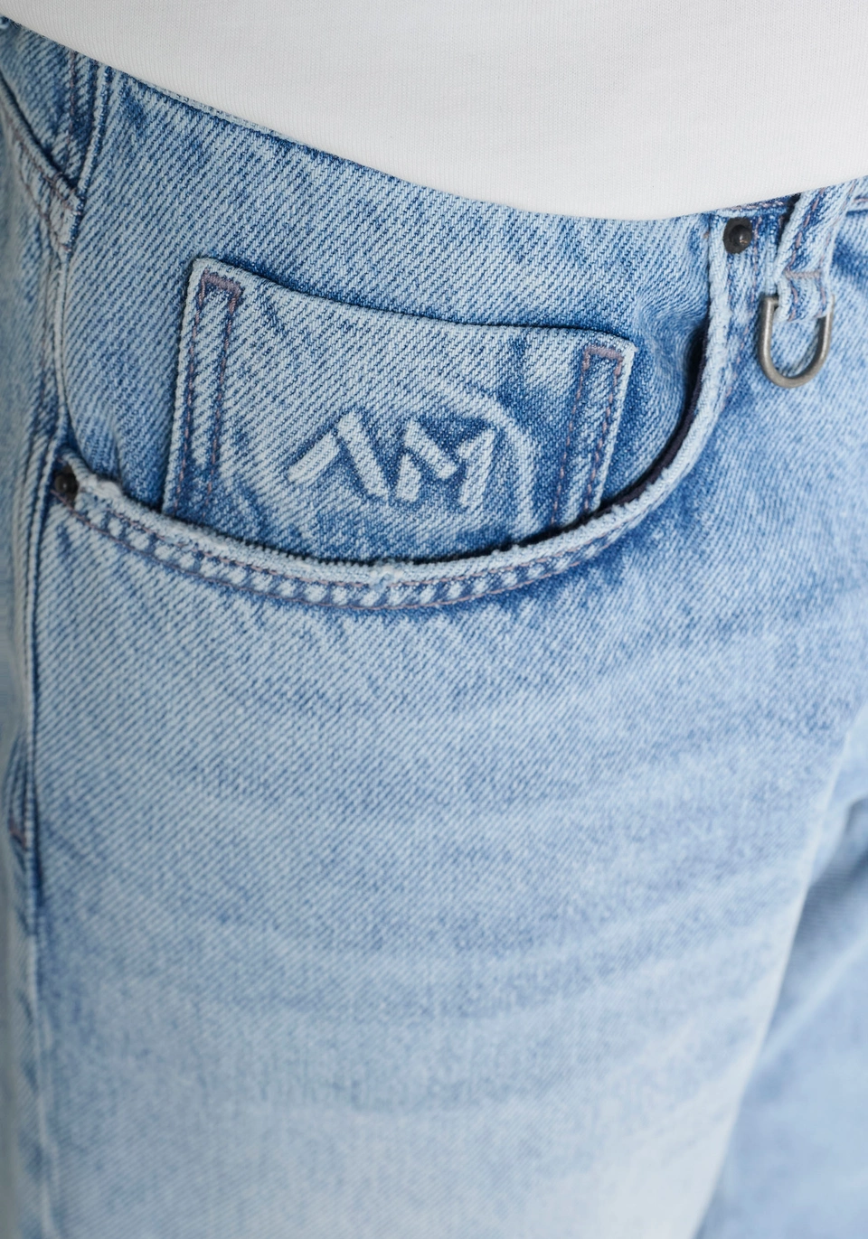 A lavagem clara cria um visual fresco e atual, com esbatidos estrategicamente posicionados que acrescentam dimensão e valorizam a silhueta. O corte apresenta-se estruturado, com cinco bolsos funcionais, costuras tonais e etiqueta discreta, reforçando o ADN minimalista e sofisticado que caracteriza a linha denim da Antony Morato.