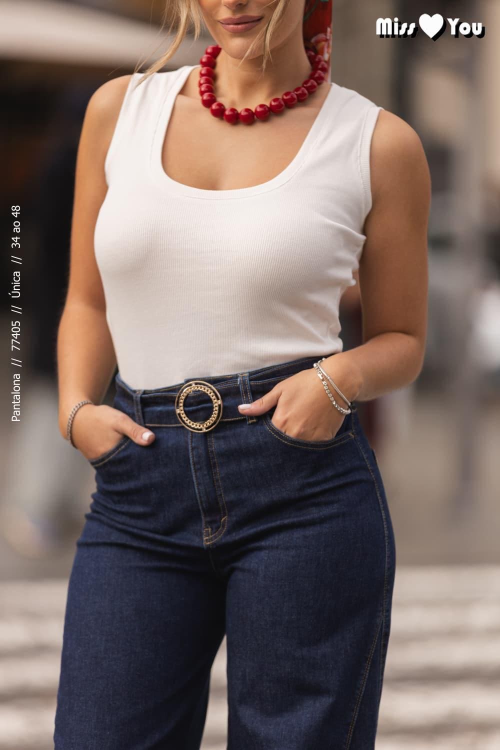 CALÇA GANGA ESCURA WIDE LEG COM CINTO MISS YOU