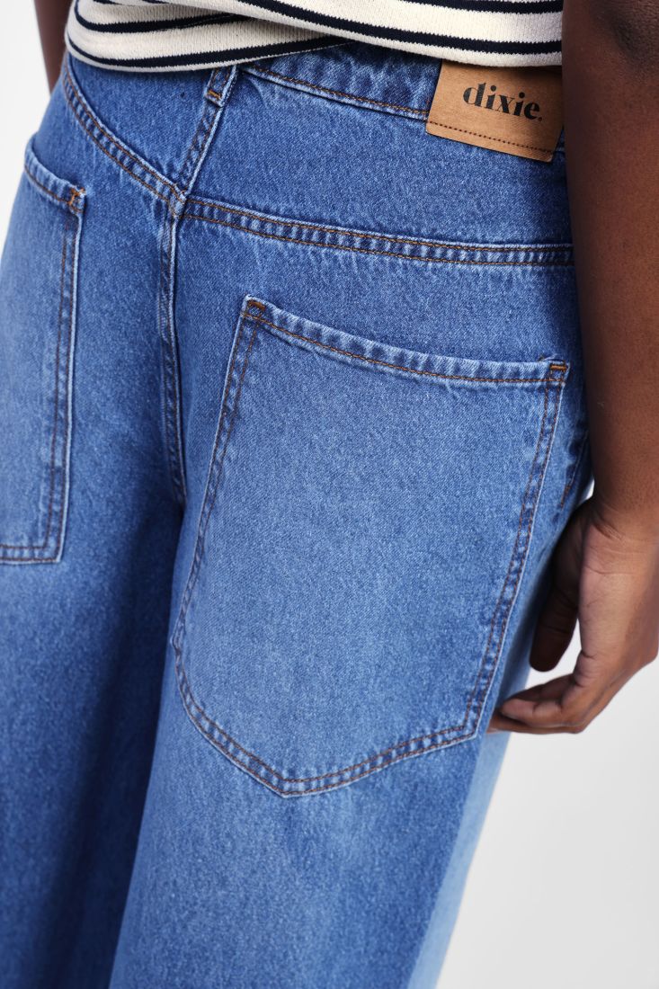 A calça jeans cropped azul da Dixie combina um visual moderno com o conforto clássico do denim 100% algodão. Com um toque suave e estrutura resistente, é a escolha ideal para looks descontraídos mas cuidadosamente pensados.