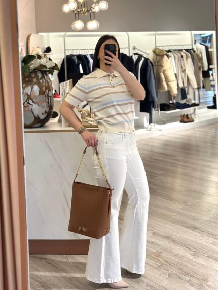 CALÇA DE GANGA FLARE CRU COM BOTÕES DOURADOS PONTO CHIC