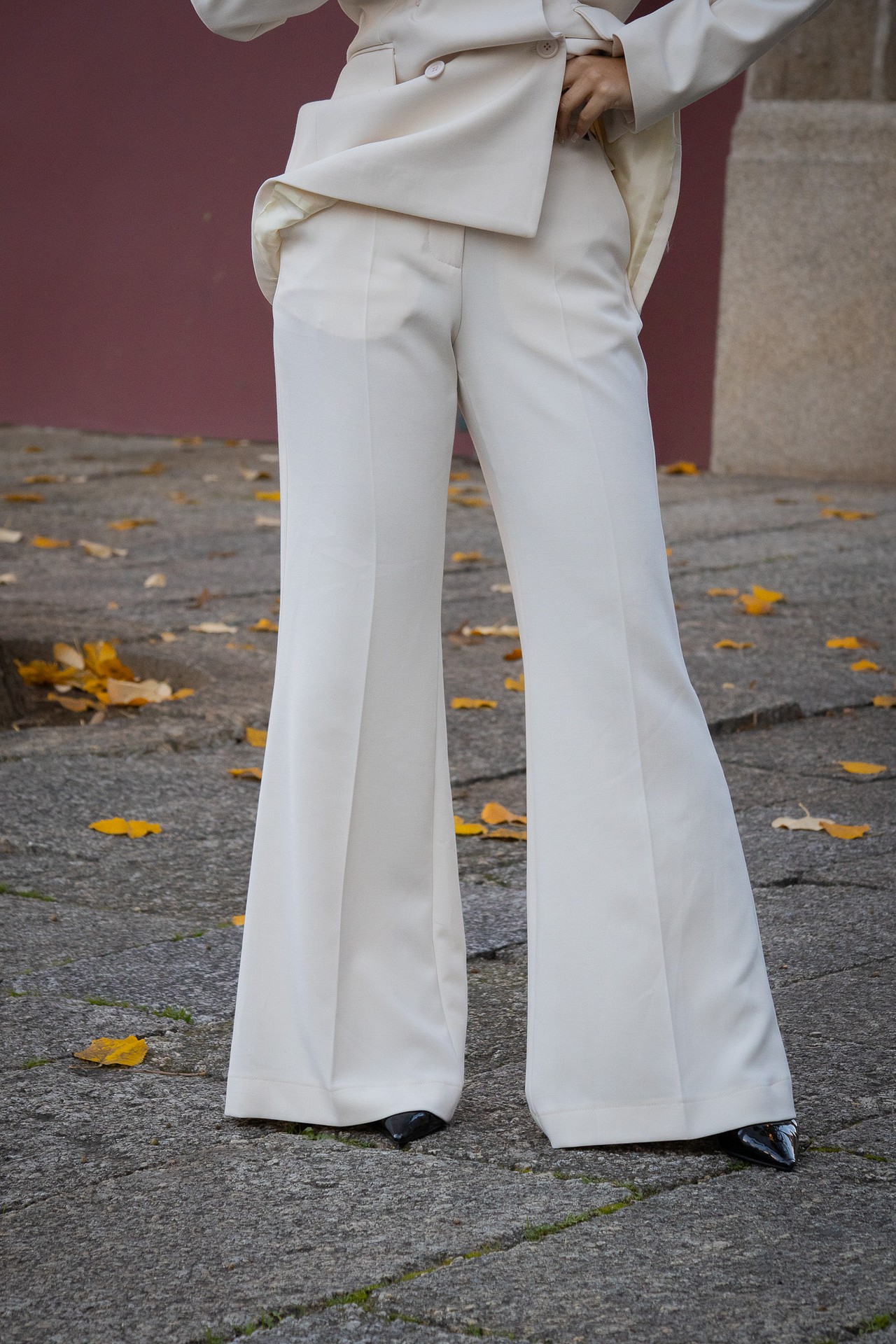 CALÇA BRANCA FLUIDA COM PREGAS PONTO CHIC