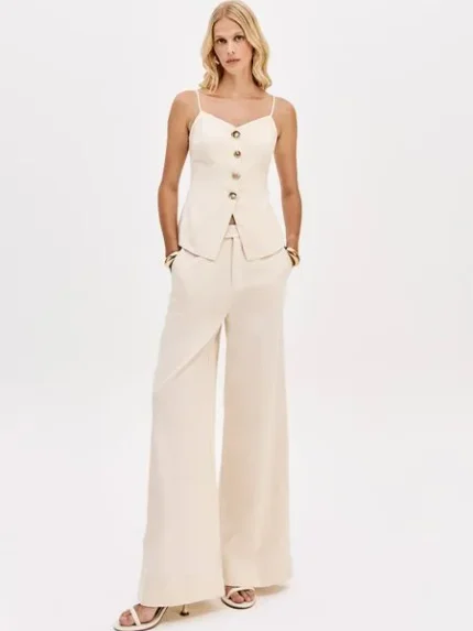 CALÇA PÉROLA COM PREGA SIMONA CORSELLINI
