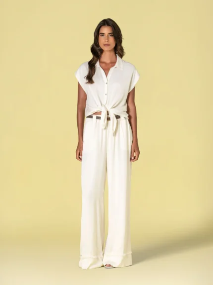 Uma peça versátil e altamente elegante, ideal para coordenados de alfaiataria com o blazer a condizer, mas também perfeita para combinações com malhas, camisas, tops ou peças mais casuais, criando looks que vão do profissional ao urbano chic com total naturalidade.