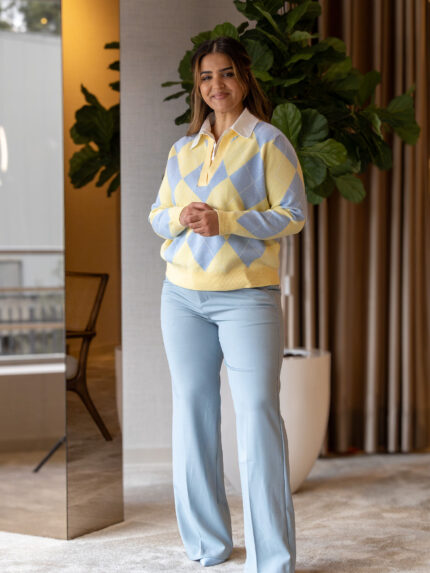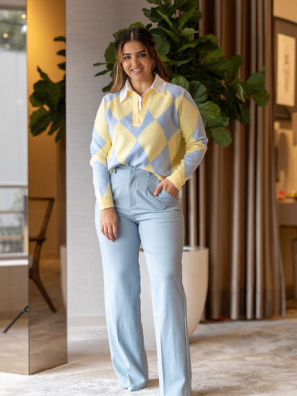 Versáteis e cheias de personalidade, podem ser combinadas com o casaco coordenado da mesma linha para um look completo e impactante, ou usadas com peças neutras para destacar o toque cintilante do tecido. Uma criação Rinascimento pensada para brilhar em qualquer ocasião.
