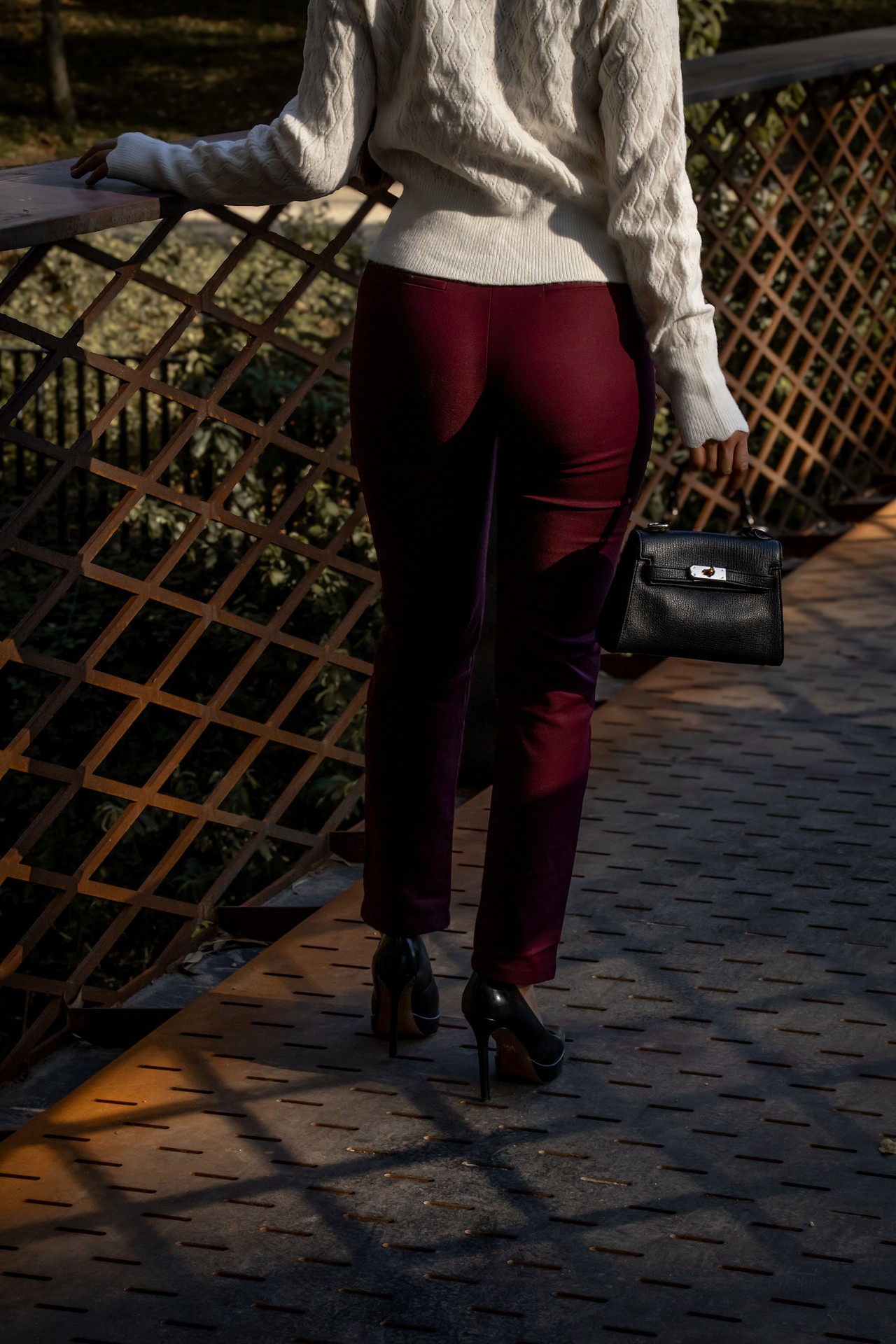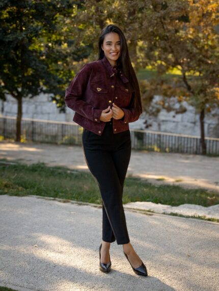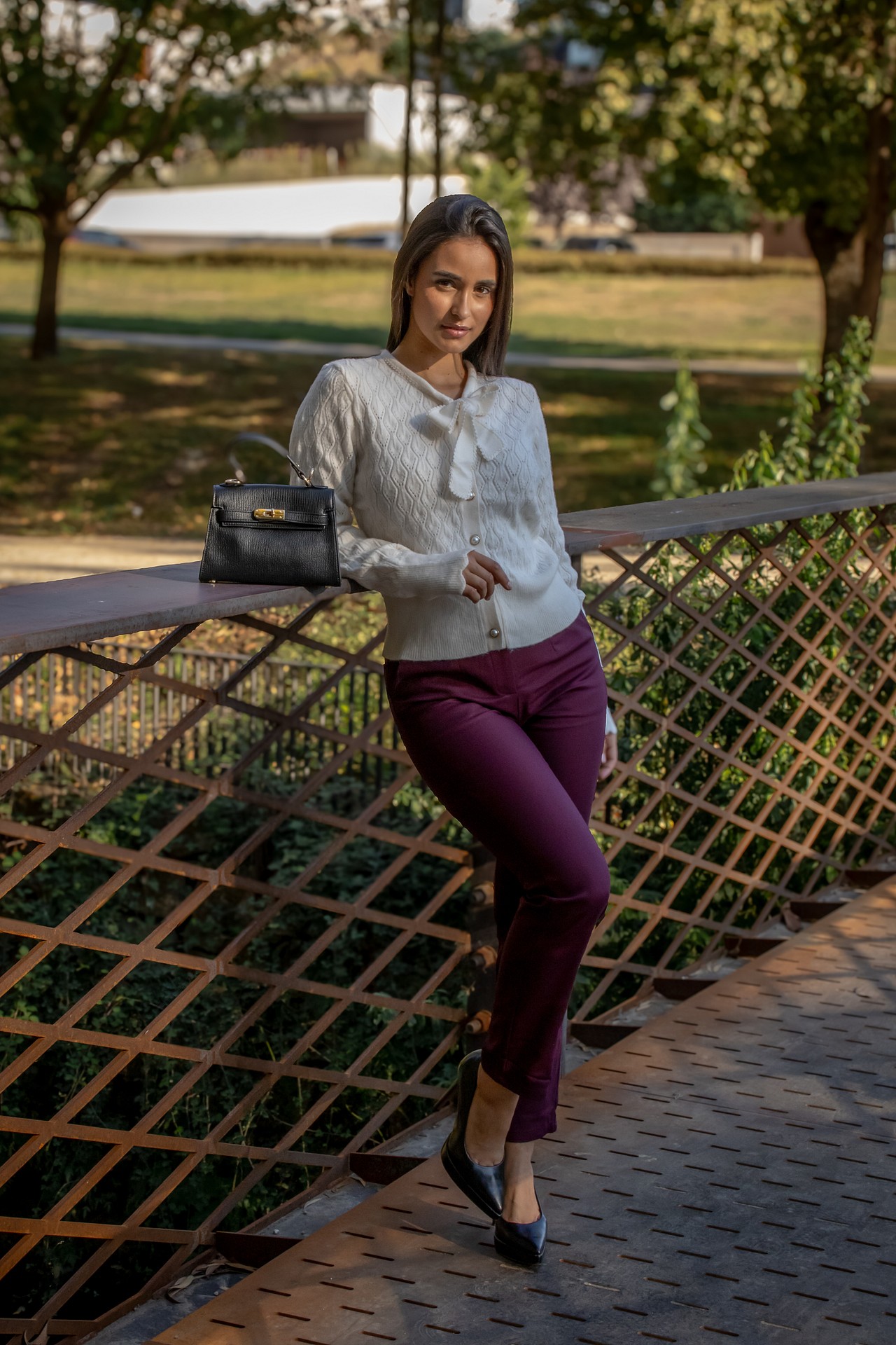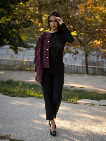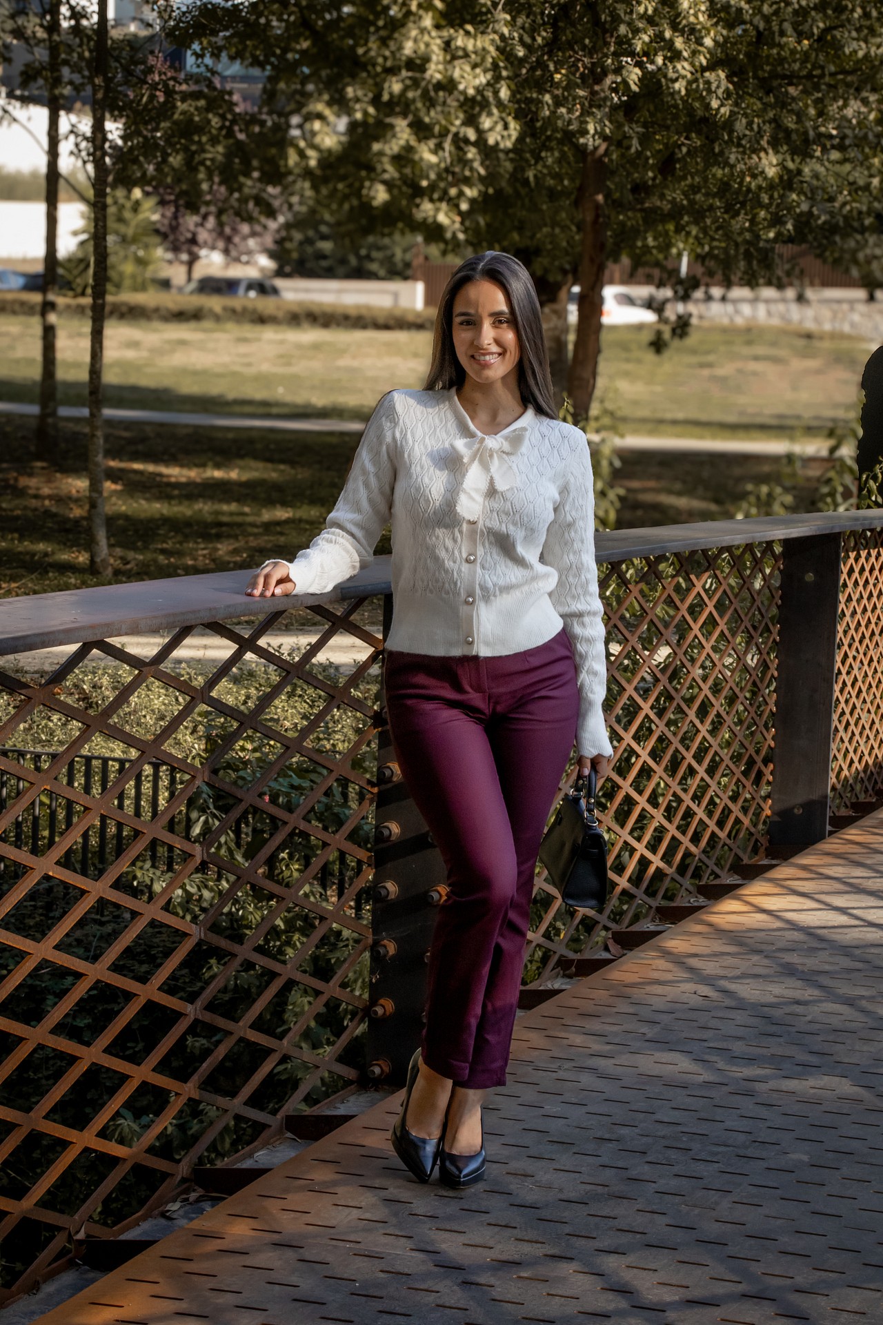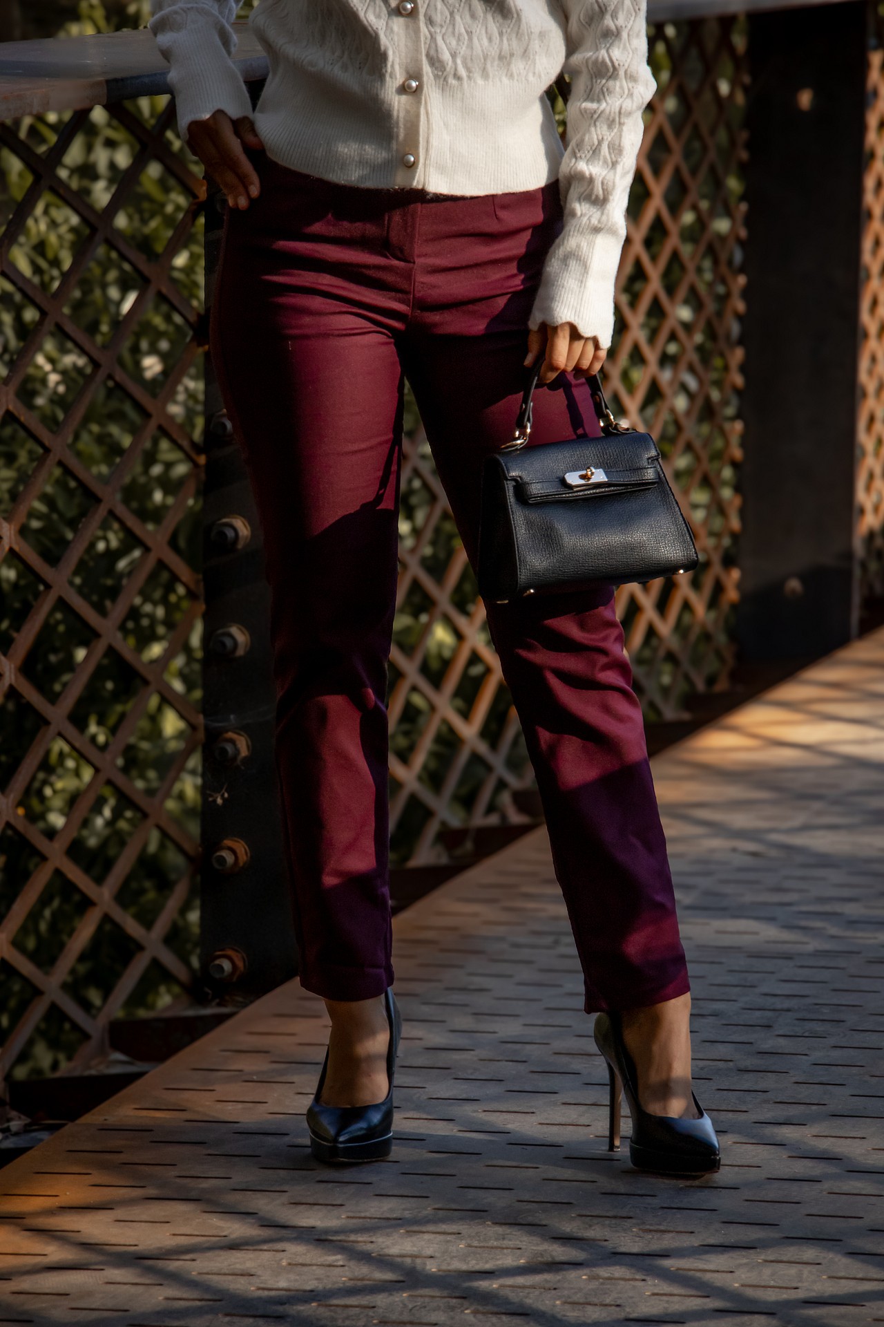 Ideais para diferentes ocasiões, as calças bordô Ponto Chic podem ser combinadas com blusas delicadas ou camisas estruturadas para um look de trabalho refinado, ou coordenadas com tops mais ousados para uma produção noturna elegante.