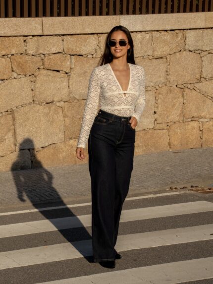 CALÇAS DE GANGA PRETA WIDE LEG PONTO CHIC