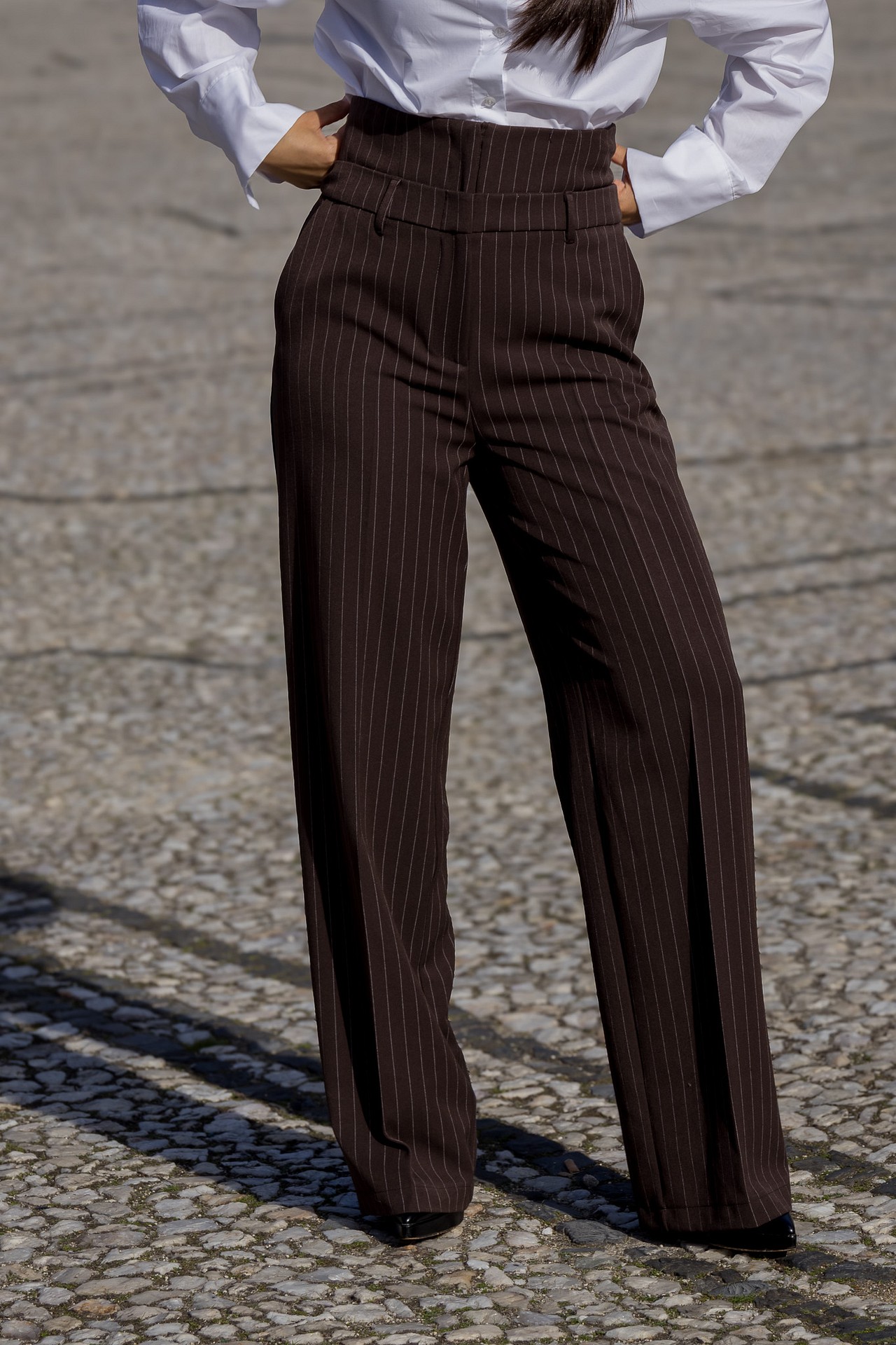 CALÇAS CASTANHAS DE ALFAIATARIA COM RISCA DIPLOMÁTICA IMPERIAL