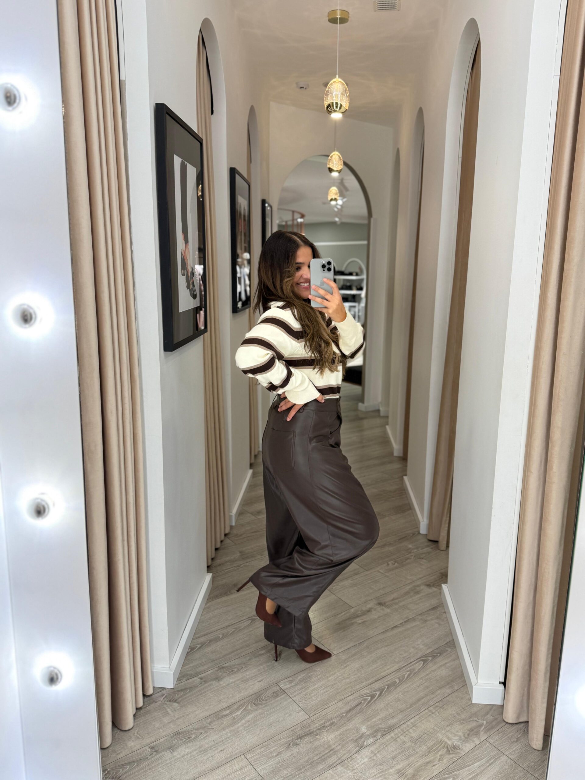 Ideais para coordenar com camisas elegantes, blusas em transparência ou malhas oversized, estas calças castanhas em ecopele Ponto Chic são perfeitas tanto para looks de dia como para produções noturnas mais arrojadas.