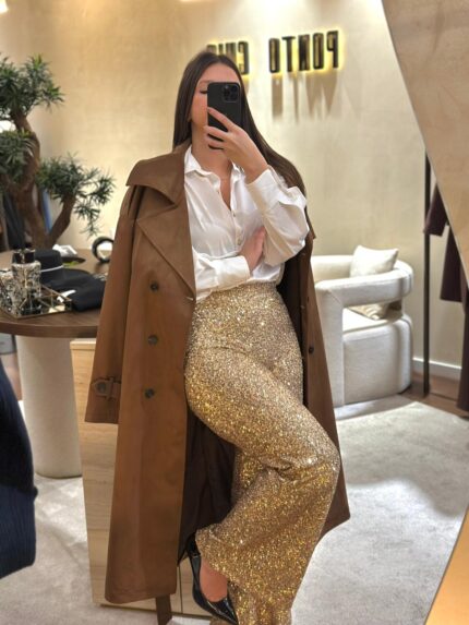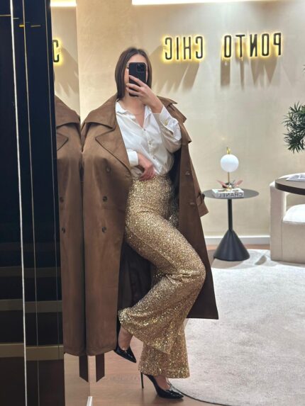 CALÇAS DOURADAS DE LANTEJOULAS RINASCIMENTO