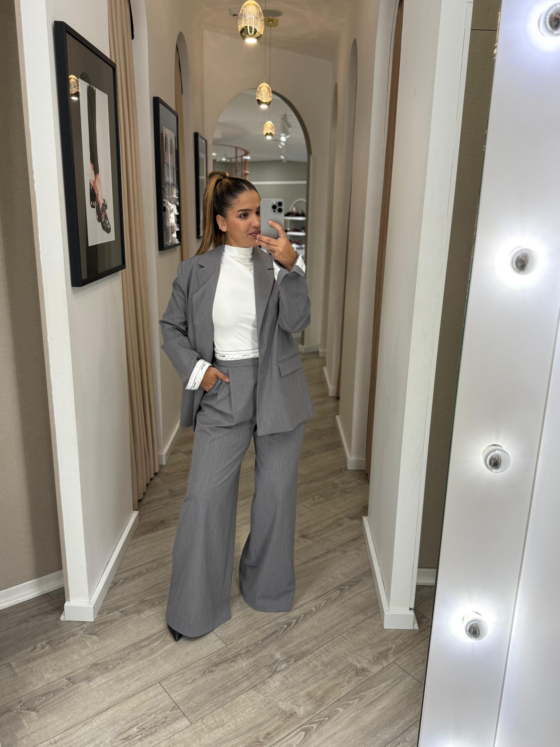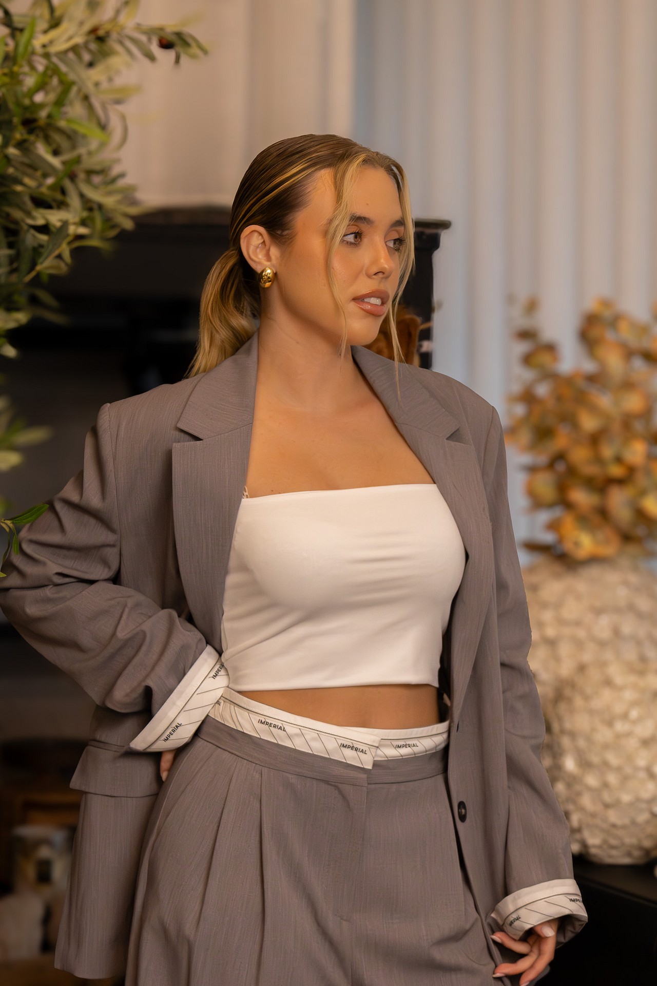O destaque vai para a cintura exclusiva com elástico interior personalizado da marca, um detalhe subtil mas cheio de estilo que distingue esta peça dentro da linha de alfaiataria contemporânea da Imperial.