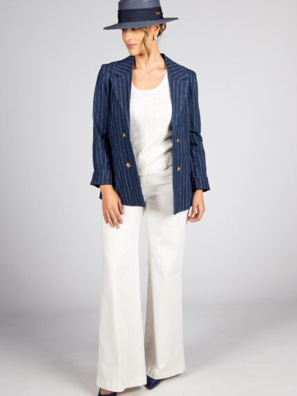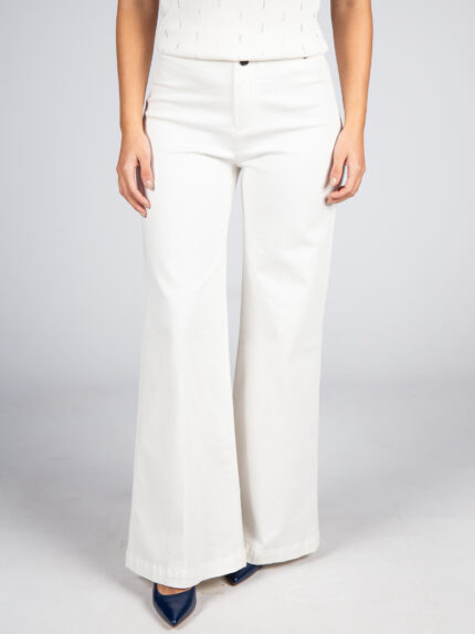 CALÇA DE SARGA BRANCA CORTE FLARE SILVINA CAMPOS