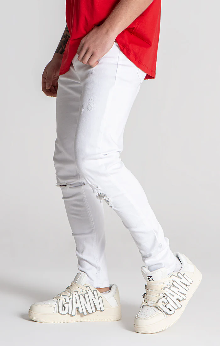 CALÇAS DE GANGA BRANCAS SKINNY COM RASGOS GIANNI KAVANAGH