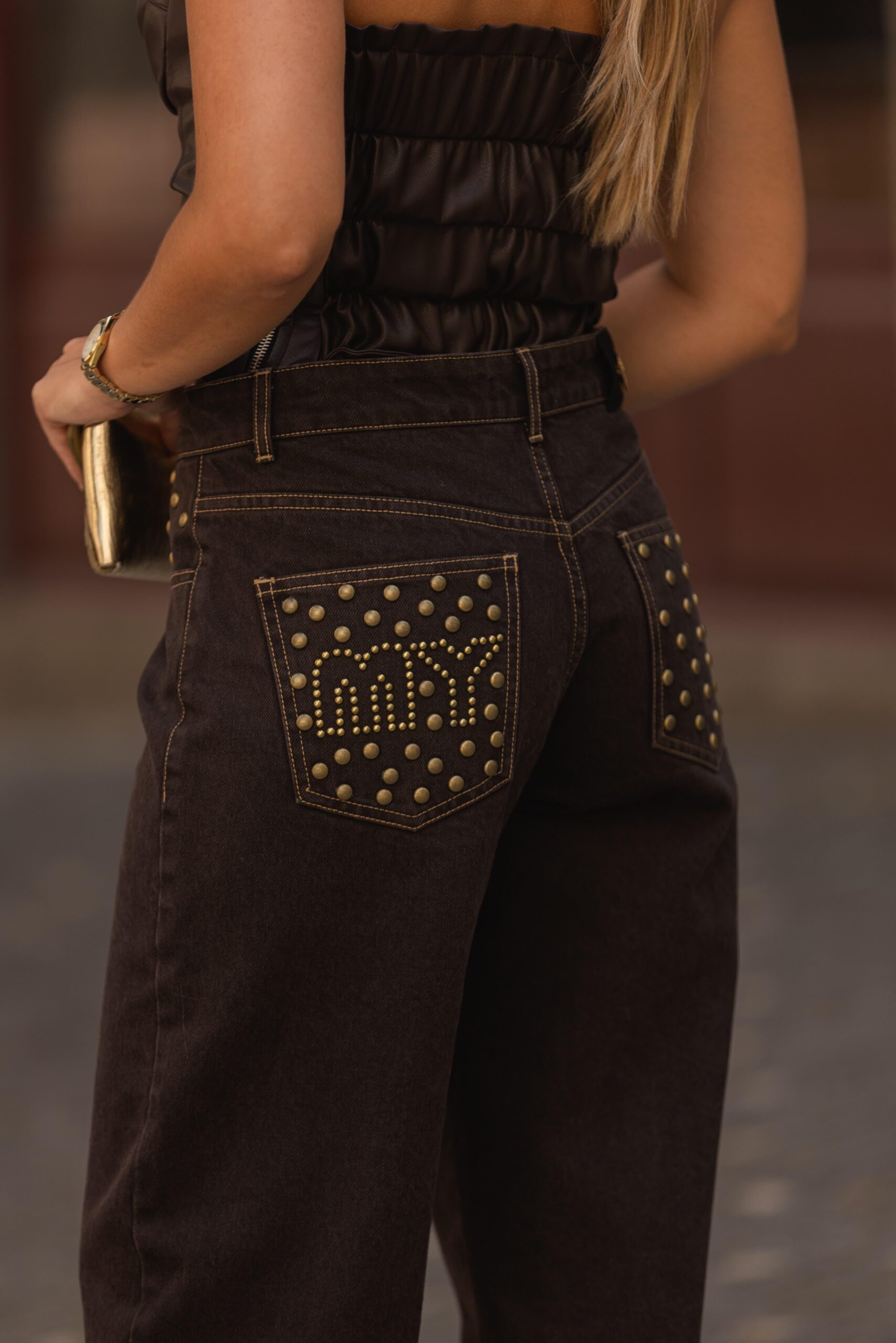 CALÇAS DE GANGA CASTANHAS COM TACHAS MISS YOU