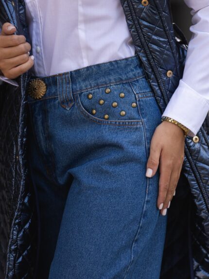 CALÇAS DE GANGA PANTALONA AZUL ESCURA COM APLICAÇÕES MISS YOU
