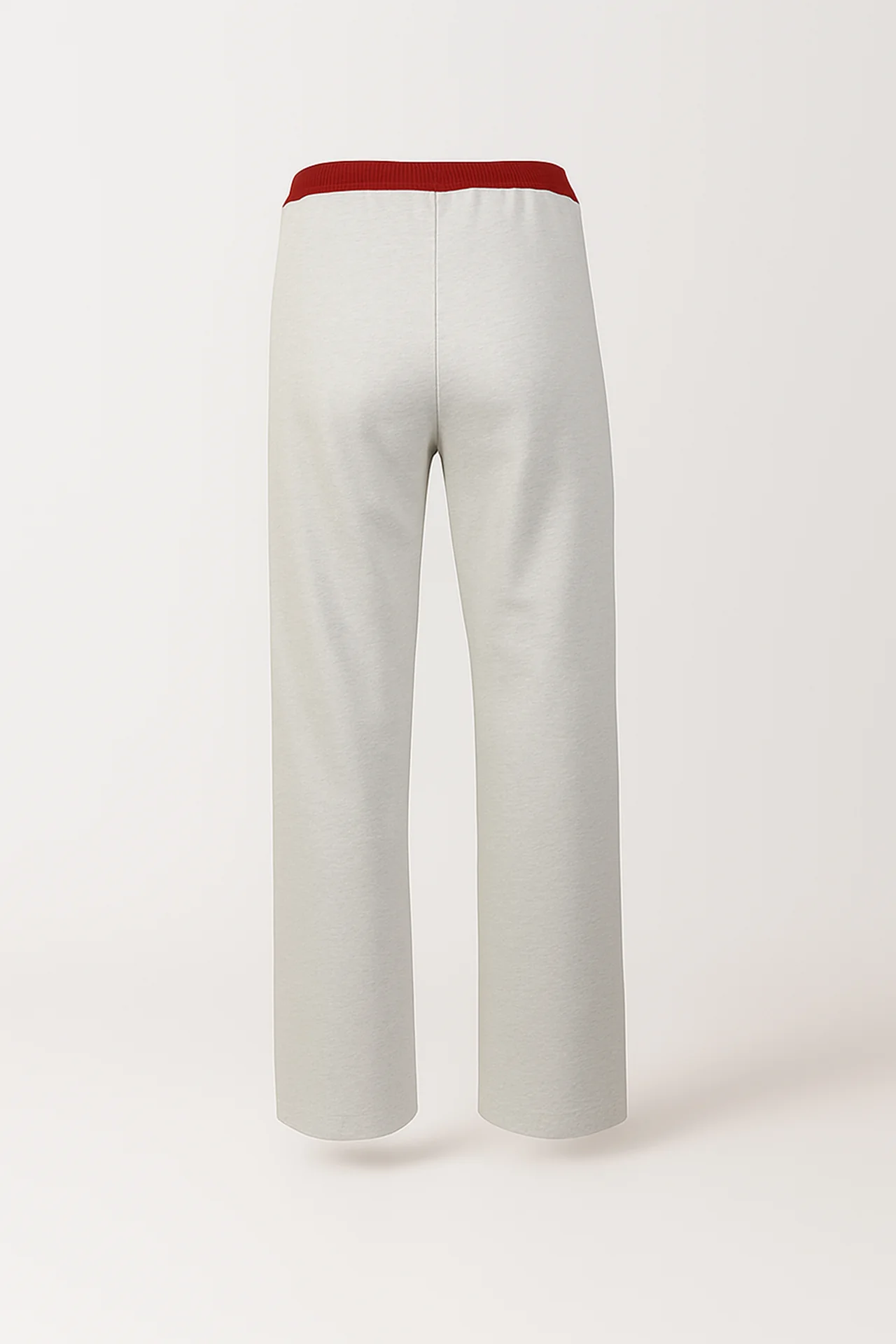 Estas calças de malha cinzentas Sahoco destacam-se pelo contraste moderno da cintura em bordô canelado com cordão ajustável personalizado. O corte descontraído garante conforto absoluto, sem perder o estilo urbano e atual.