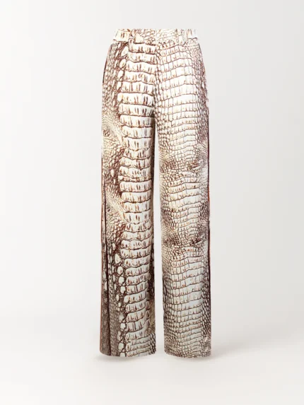 A sua silhueta reta e fluida permite coordenados versáteis, desde combinações casuais com t-shirts e sneakers até looks mais sofisticados com sobreposições da mesma linha Sahoco.