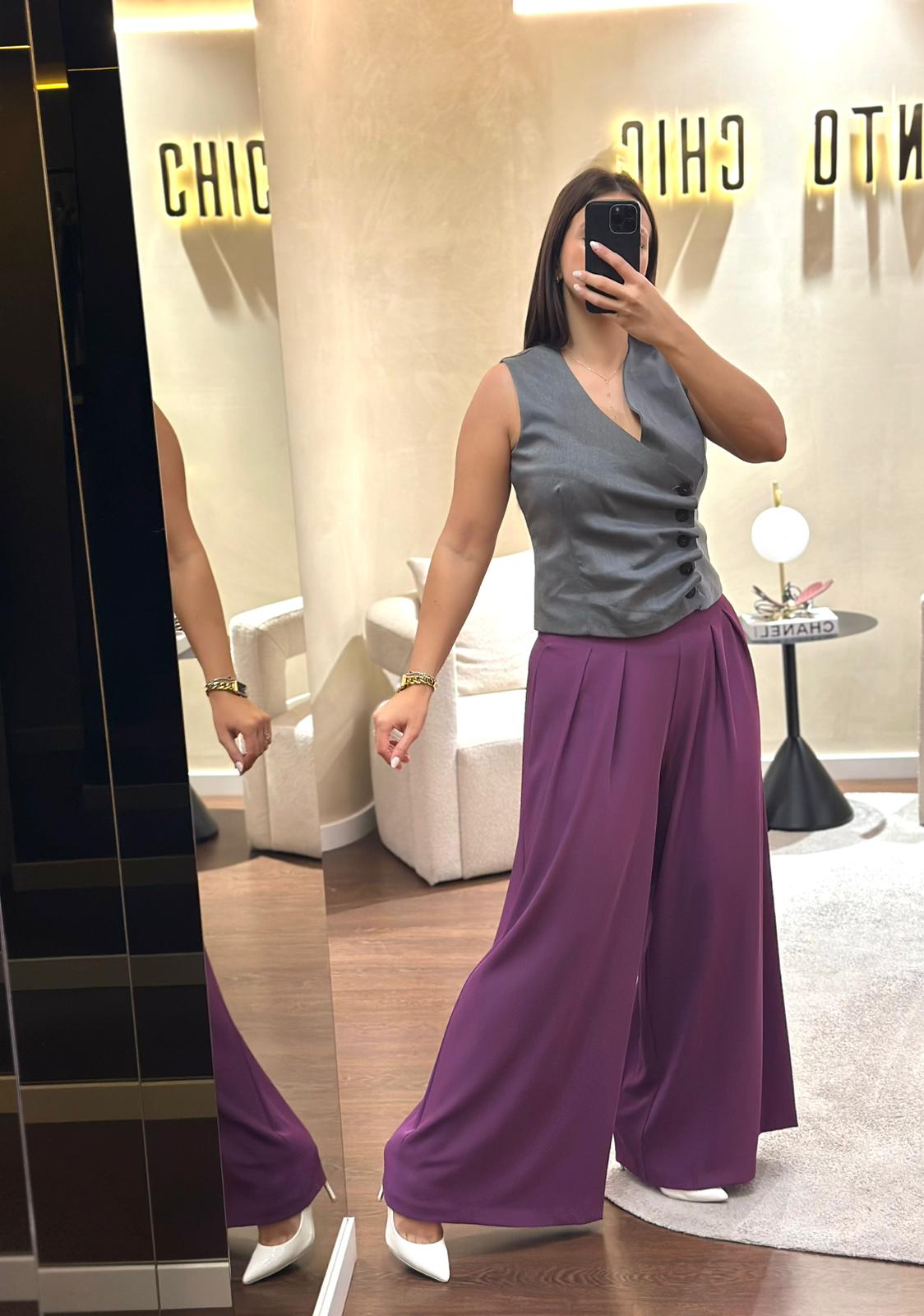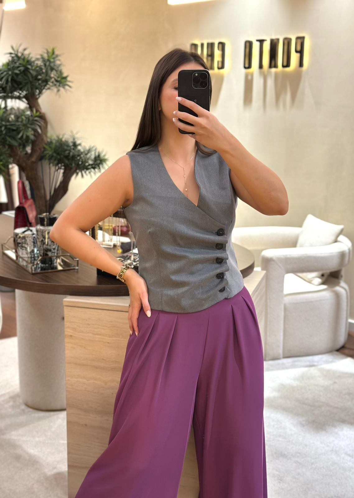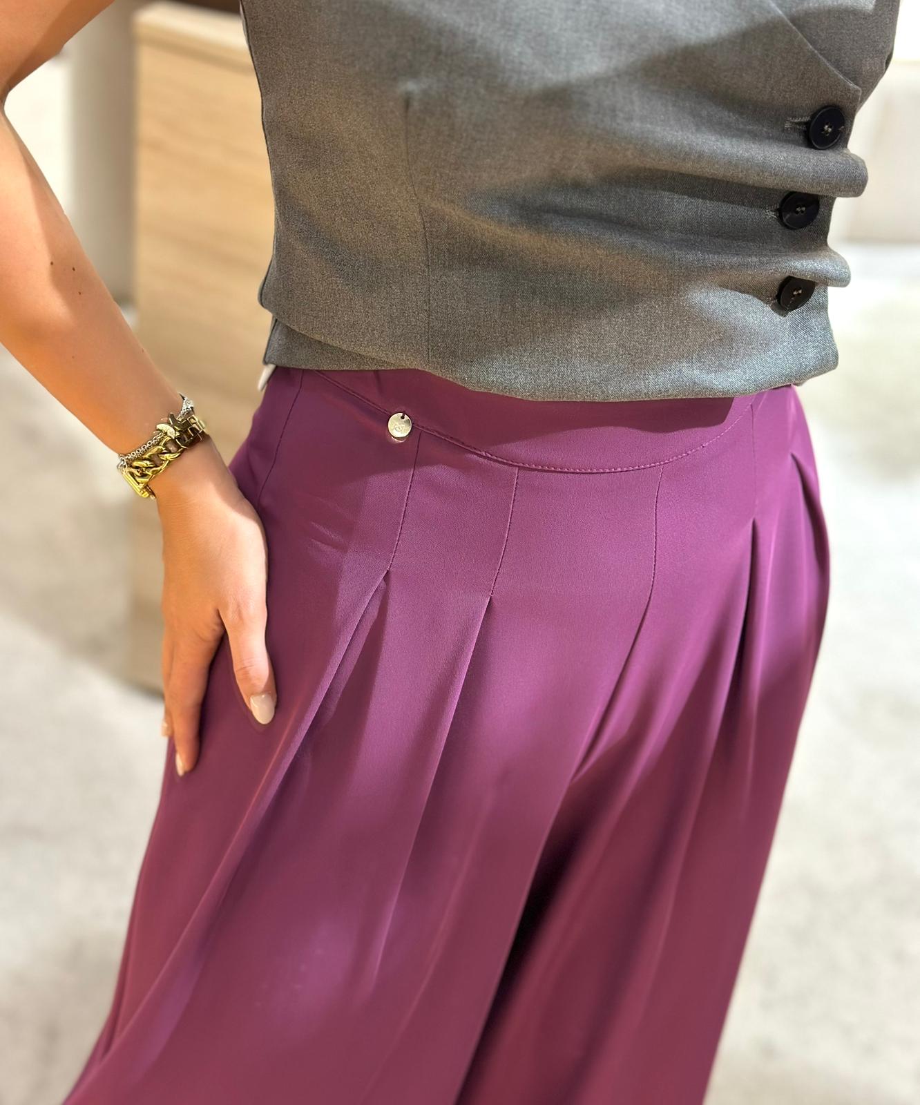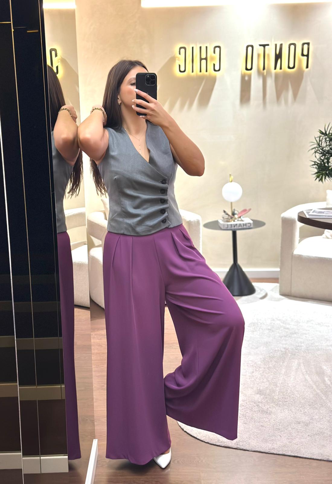 CALÇAS LILÁS FLUIDAS COM PREGA