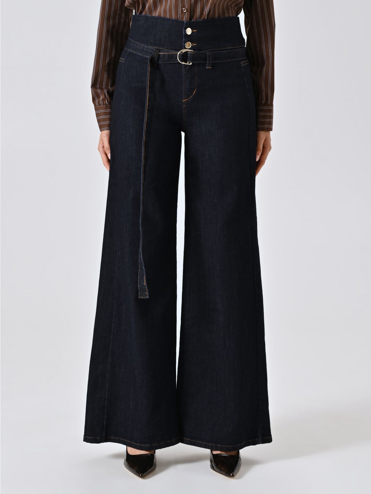 CALÇAS WIDE LEG JEANS ESCURO COM CINTO DE RINASCIMENTO