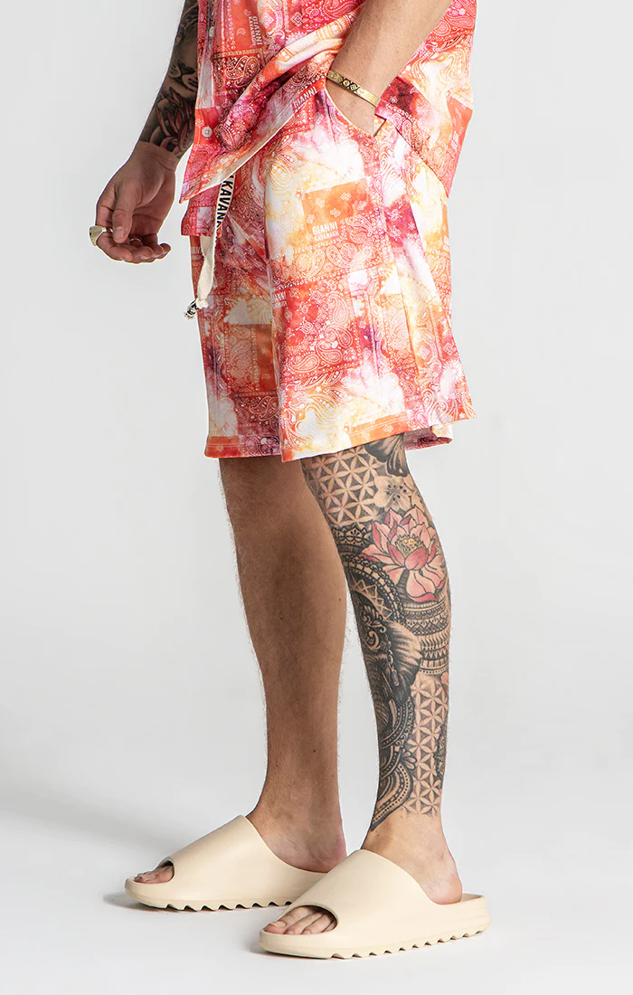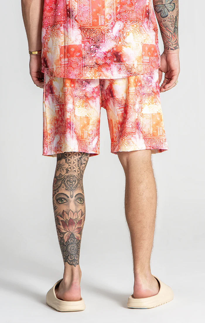 Os calções estampados da Gianni Kavanagh são a fusão perfeita entre conforto e atitude. Produzidos em 90% poliéster e 10% elastano, oferecem leveza, elasticidade e um toque suave na pele — ideais para dias de calor ou momentos descontraídos.