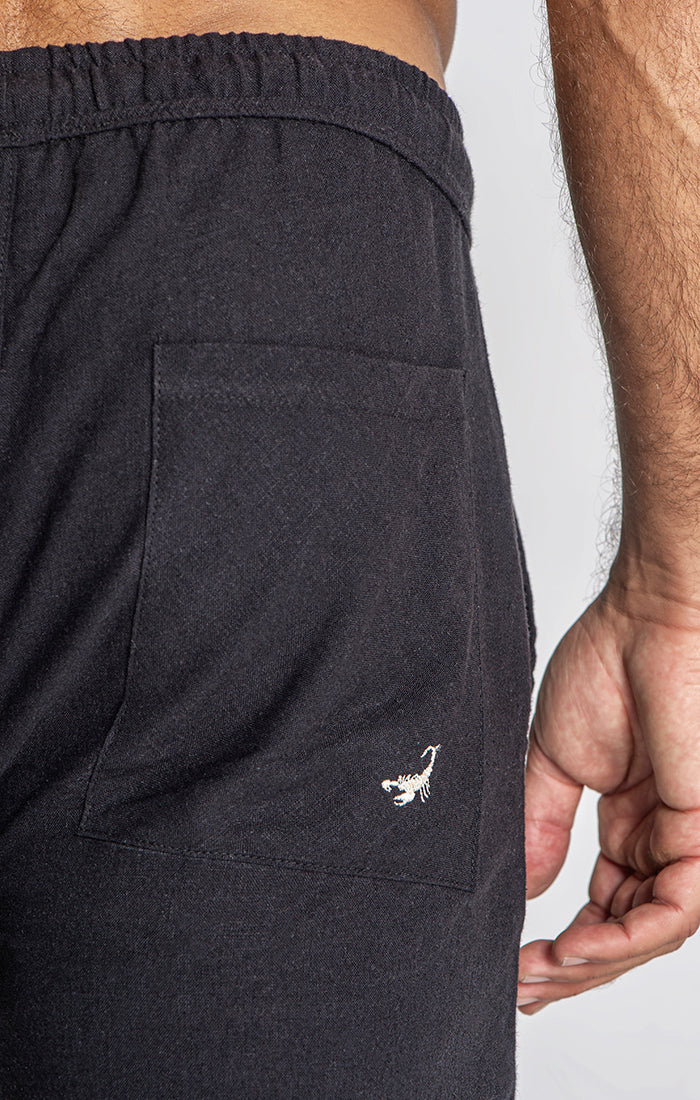 Com cintura elástica ajustável por cordão, bolsos laterais e bolso traseiro com bordado de escorpião, o design aposta na simplicidade elegante e na qualidade premium dos materiais.
