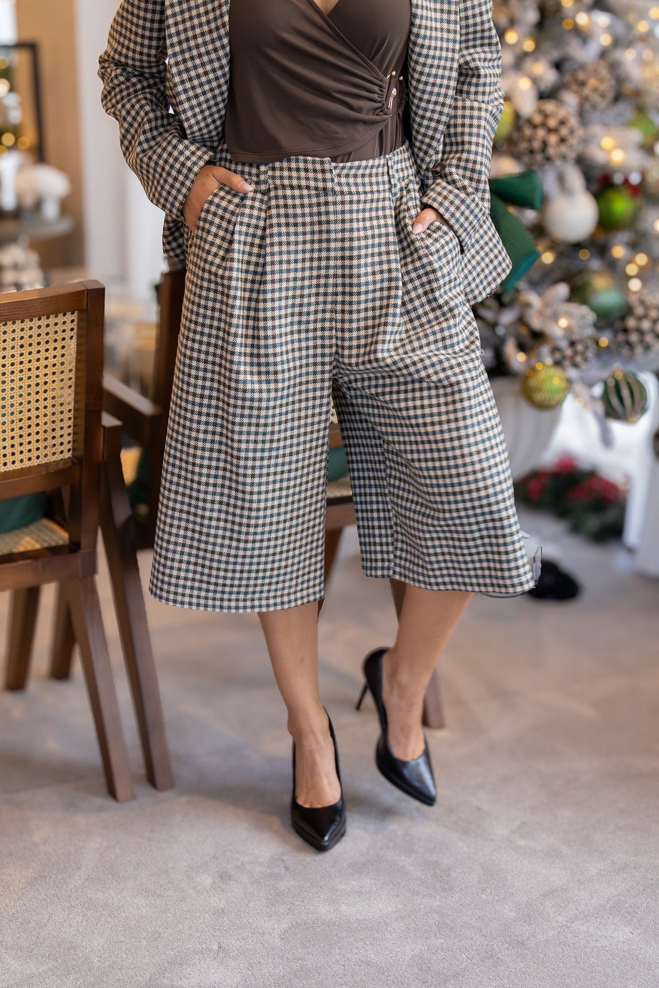 CALÇÕES PIED-DE-POULE COM BOLSOS RINASCIMENTO