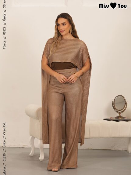 BLUSA BEGE COM FOLHOS E MANGA FLUIDA PONTO CHIC