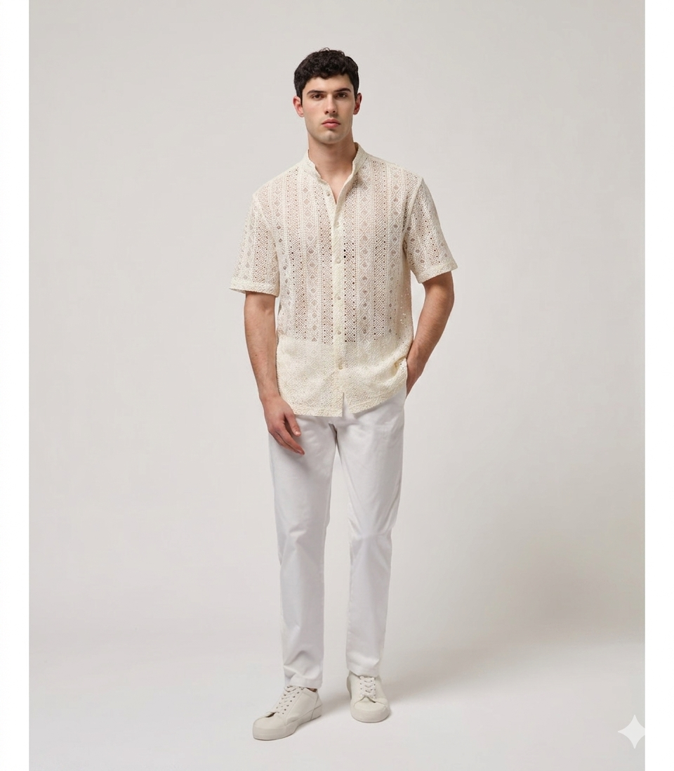 A camisa bege em tricot texturada Gianni Lupo destaca-se pela sua construção leve e pelo padrão trabalhado, que confere dimensão e sofisticação à peça. Confeccionada com uma composição de 70% algodão e 30% poliamida, garante conforto, respirabilidade e um toque suave ao longo de todo o dia.
