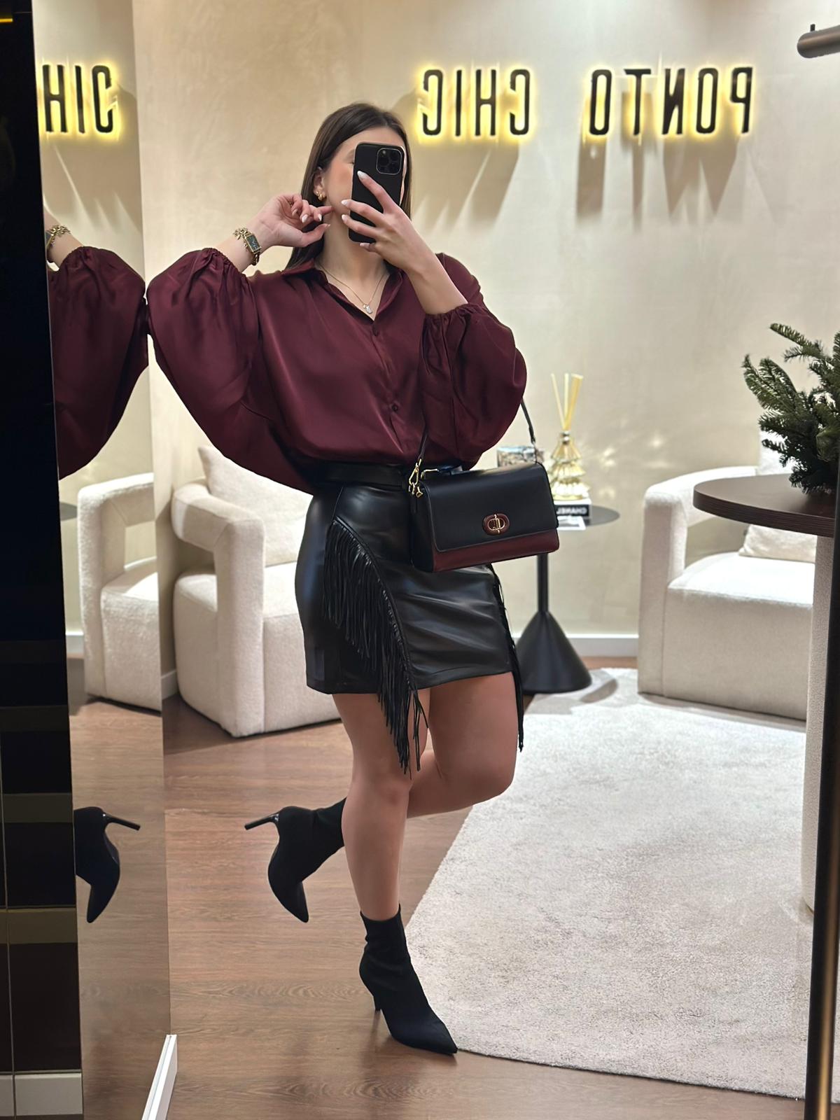 CAMISA BORDEAUX CURTA ACETINADA PONTO CHIC