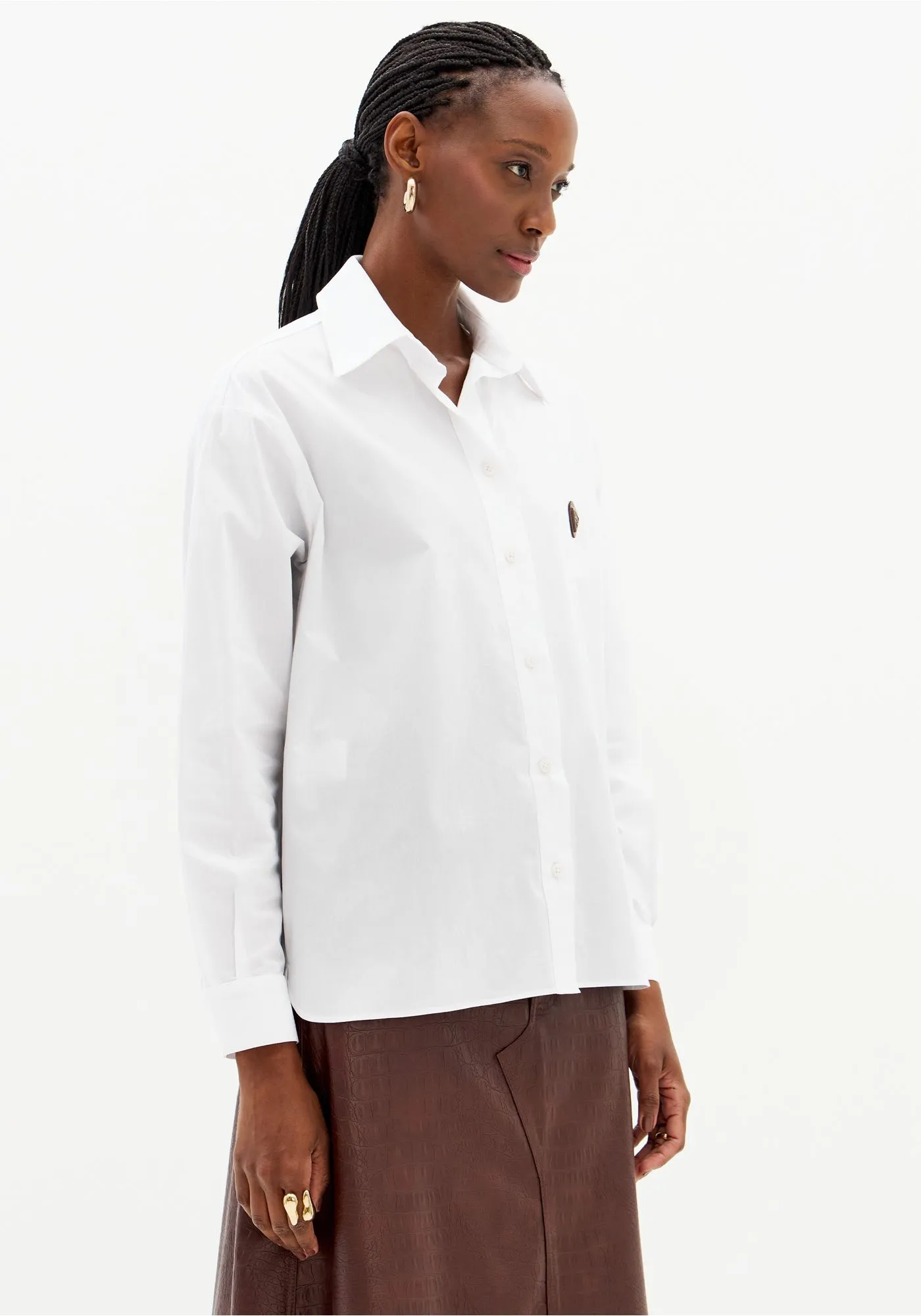 A camisa branca clássica da Lança Perfume é um verdadeiro ícone de sofisticação e versatilidade. Com design atemporal, apresenta corte reto e colarinho estruturado, detalhes que a tornam indispensável em qualquer guarda-roupa feminino.