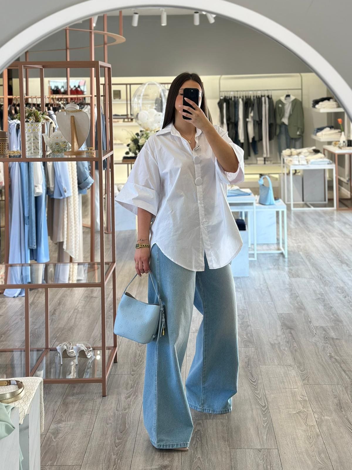 Esta camisa branca destaca-se pelo seu design elegante e contemporâneo, combinando simplicidade com detalhes diferenciadores. Confeccionada em 100% algodão, apresenta um tecido leve, respirável e confortável, ideal para o dia a dia.