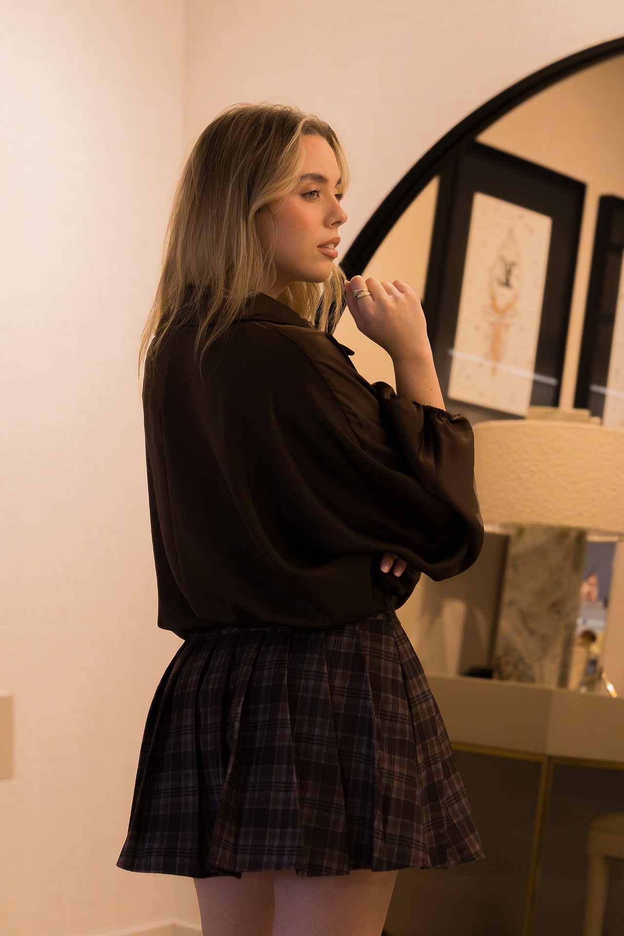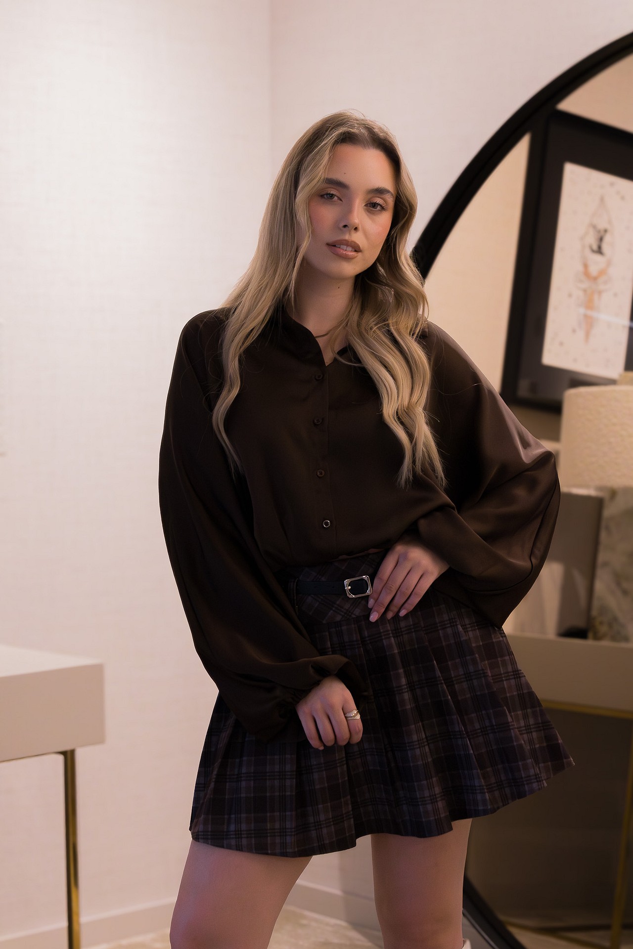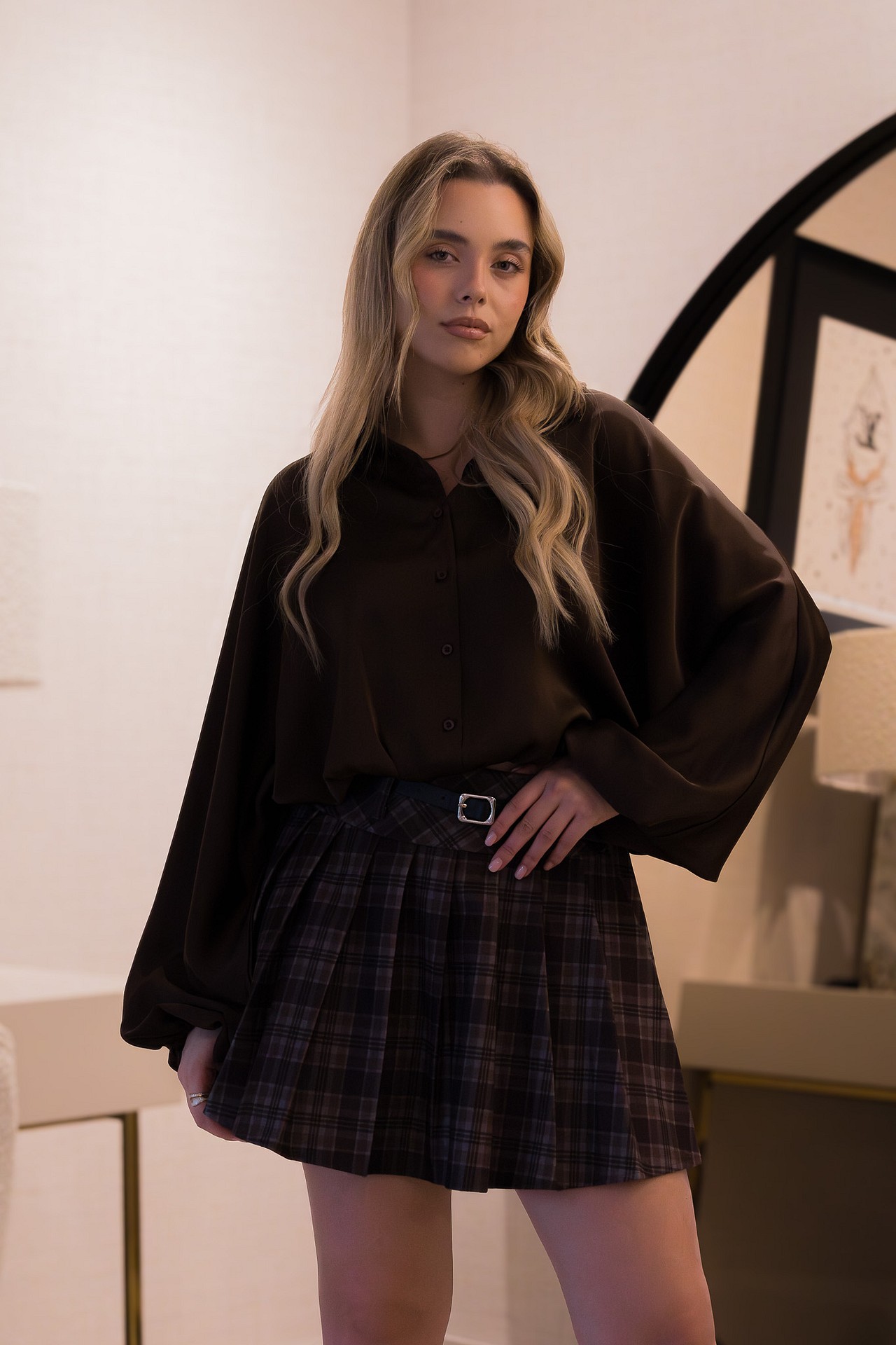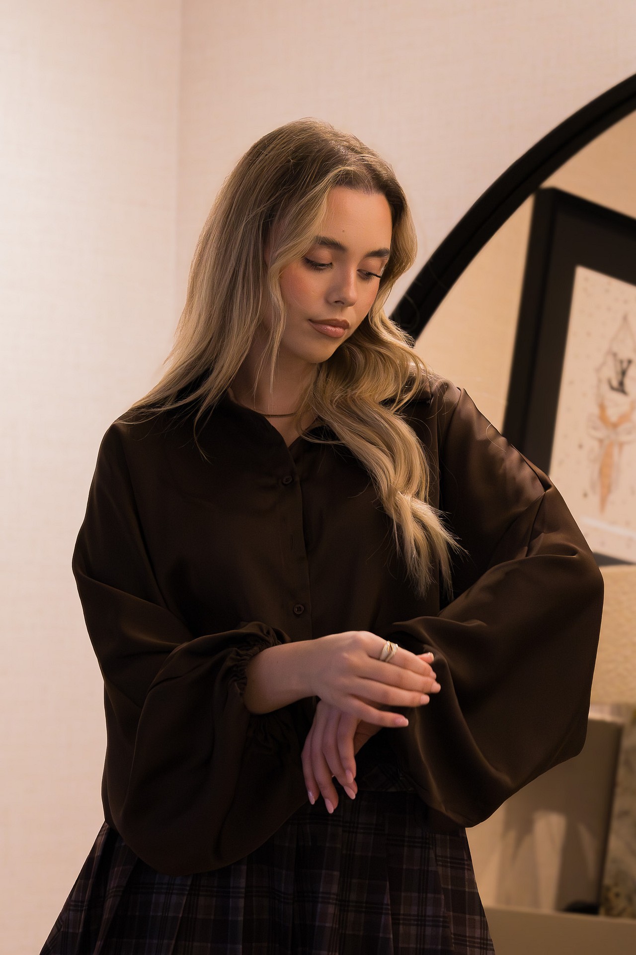 CAMISA CASTANHA CURTA ACETINADA PONTO CHIC