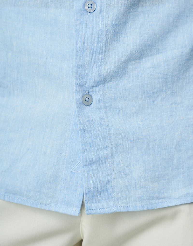 CAMISA DE LINHO MANGA CURTA GOLA ITALIANA AZUL CLARO ZOLF