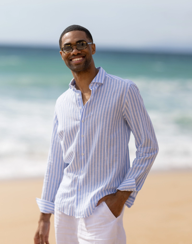 Uma peça leve e sofisticada, ideal para os dias mais quentes. Confeccionada com 55% linho e 45% algodão, combina a frescura e respirabilidade do linho com o conforto e suavidade do algodão.